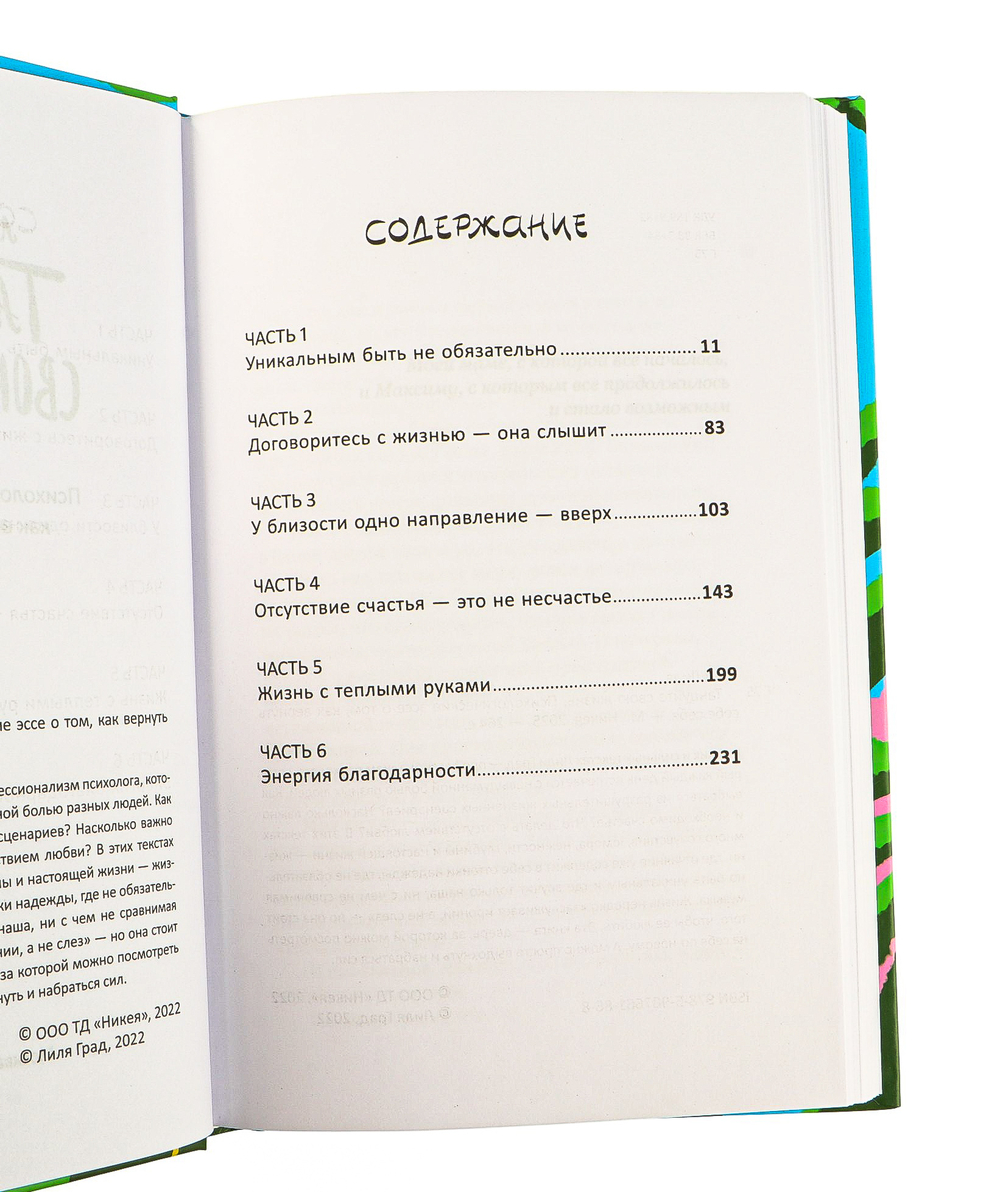 В ярких и сильных текстах Лили Град – профессионализм психолога, который каждый день встречается с невыдуманной болью разных людей. Как выбраться из разрушительных жизненных сценариев? Насколько важно и необходимо счастье? Что делать с отсутствием любви?
