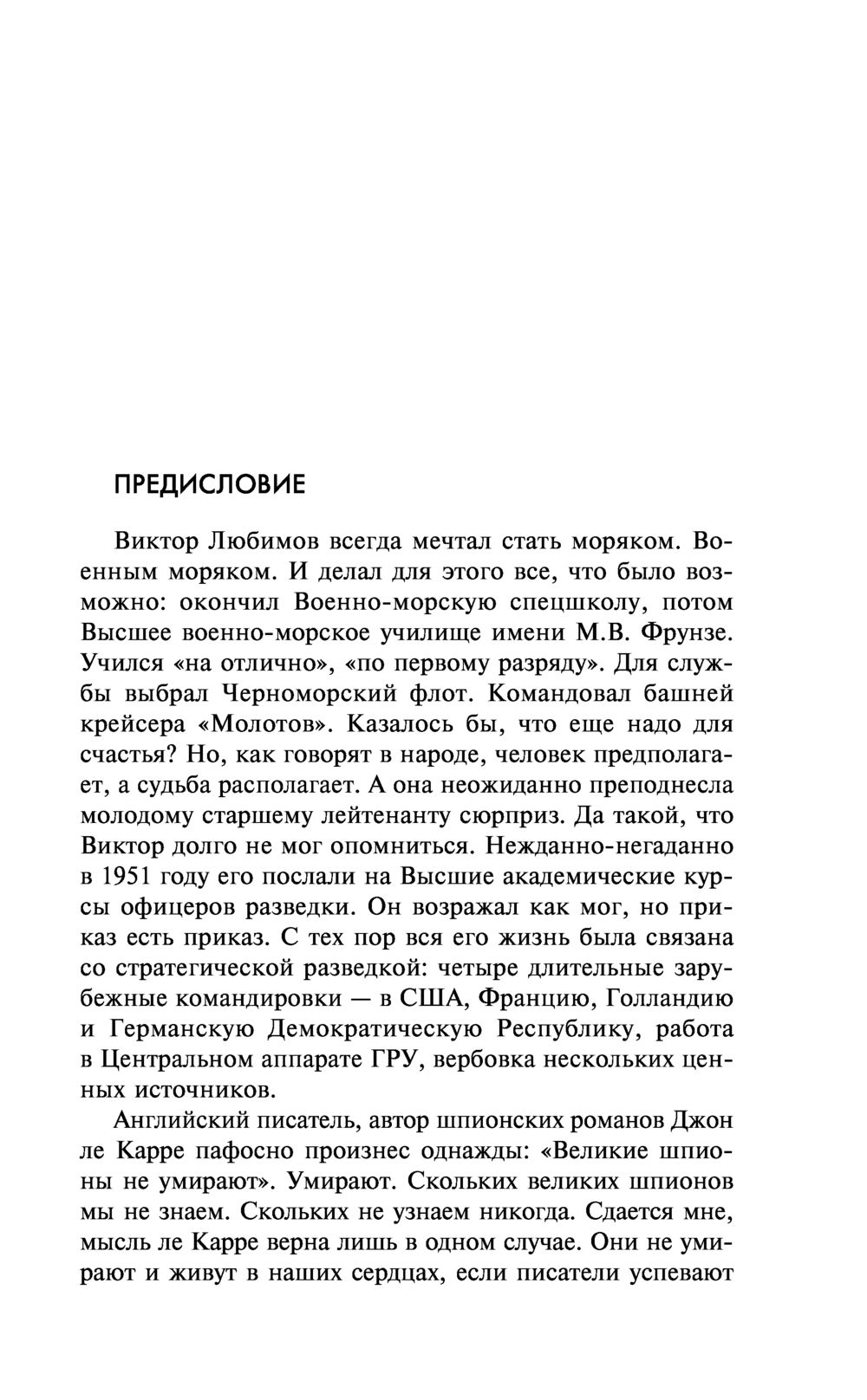 Эта книга – рассказ об одном из самых эффективных разведчиков ГРУ ГШ ВС СССР Викторе Андреевиче Любимове. В годы "холодной войны" он добыл секрет твердого топлива для советских межконтинентальных баллистических ракет; завербовал агента, работавшего на узле связи Верховного главнокомандующего вооруженными силами НАТО в Европе, и успешно использовал завербованного полковника из штаба НАТО.