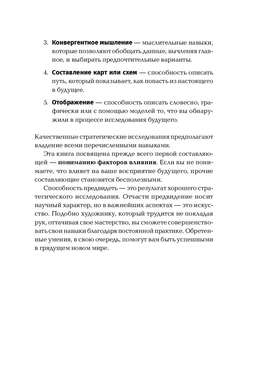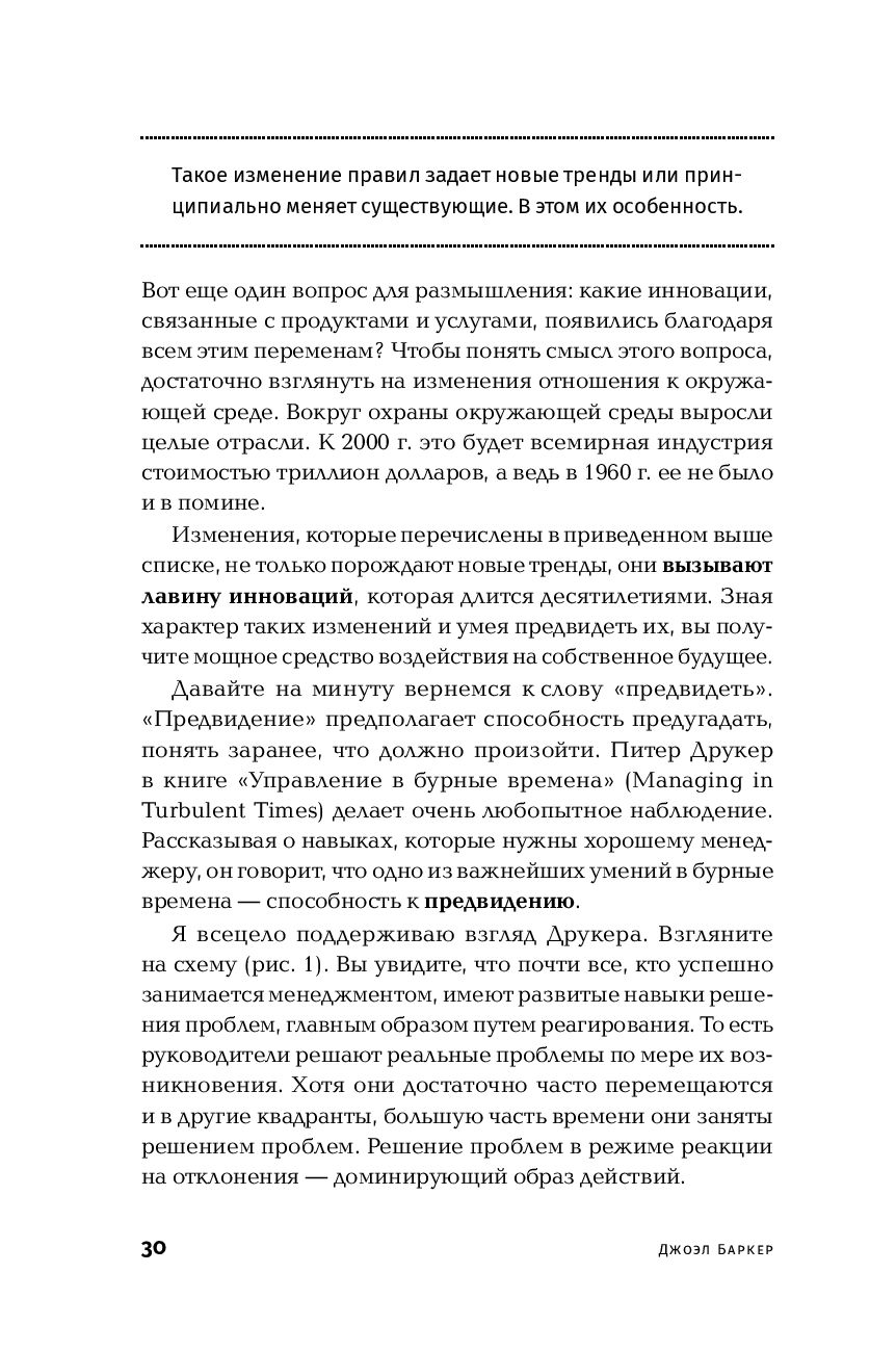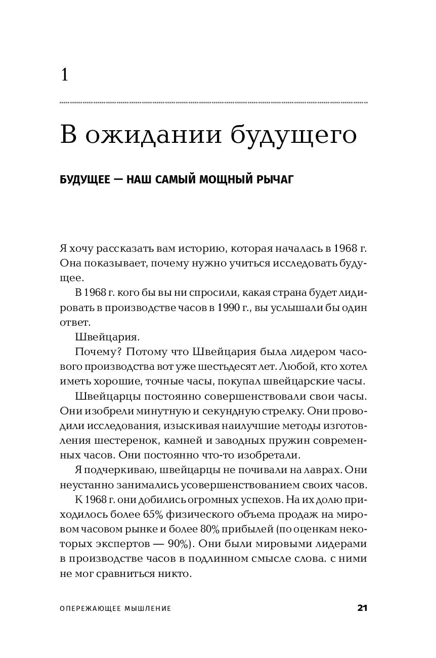 Управлять прошлым нельзя: оно уже безвозвратно прошло. Управлять настоящим – значит просто реагировать на события. Управлять можно только будущим, но для этого надо уметь его предвидеть: какие новые продукты появятся через несколько лет, как будет вести себя рынок, какие новые возможности и угрозы могут возникнуть. Умение заметить нарождающуюся тенденцию раньше других, развить опережающее мышление – ключевой навык современного успешного руководителя, политика, ученого.