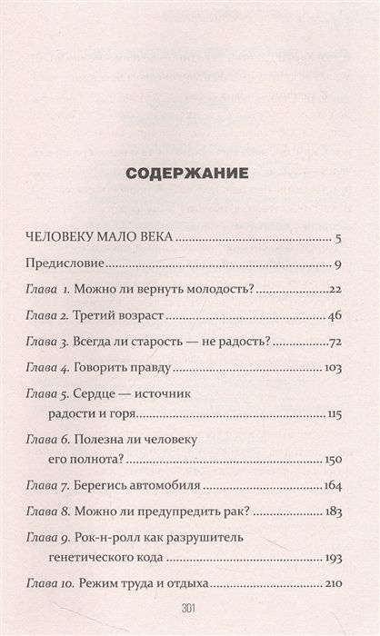 Книга "Человеку мало века" представляет собой уникальный материал по теме старения, тщательно собранный автором. Разумный и волевой человек может надолго сохранить свое здоровье, но очень важно, чтобы о долголетии человек заботился с молодых лет.