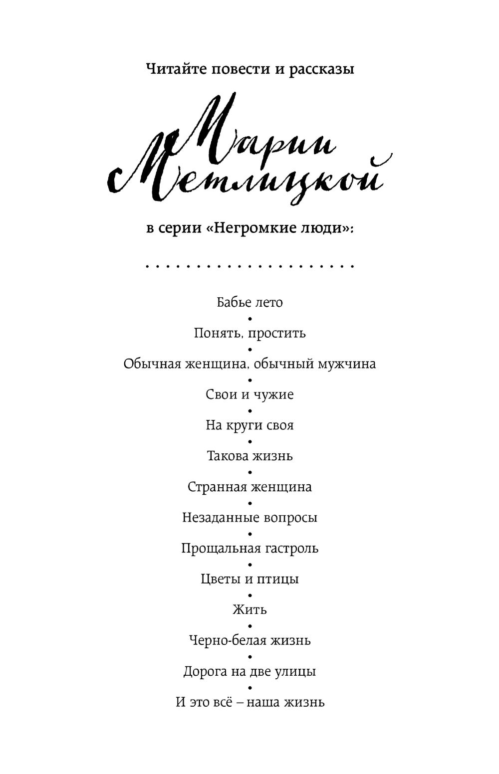 | Серия | Негромкие люди Марии Метлицкой. Проза разных лет |
