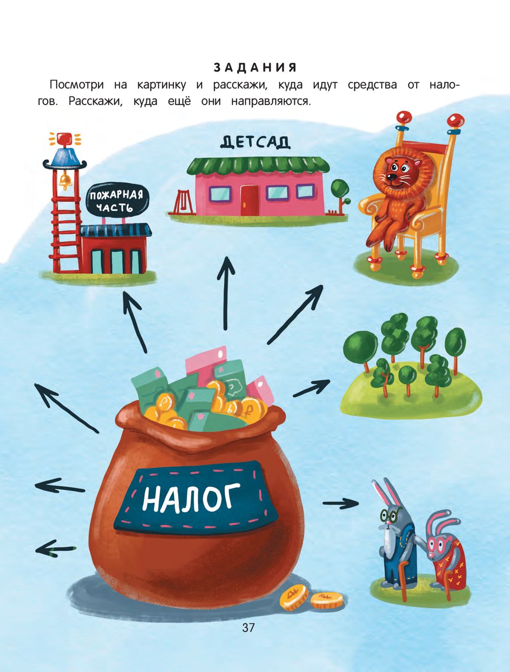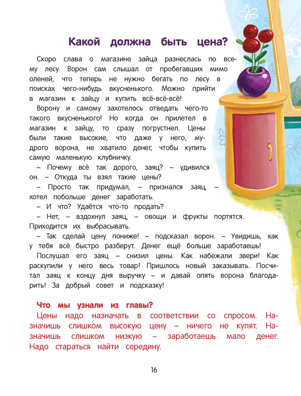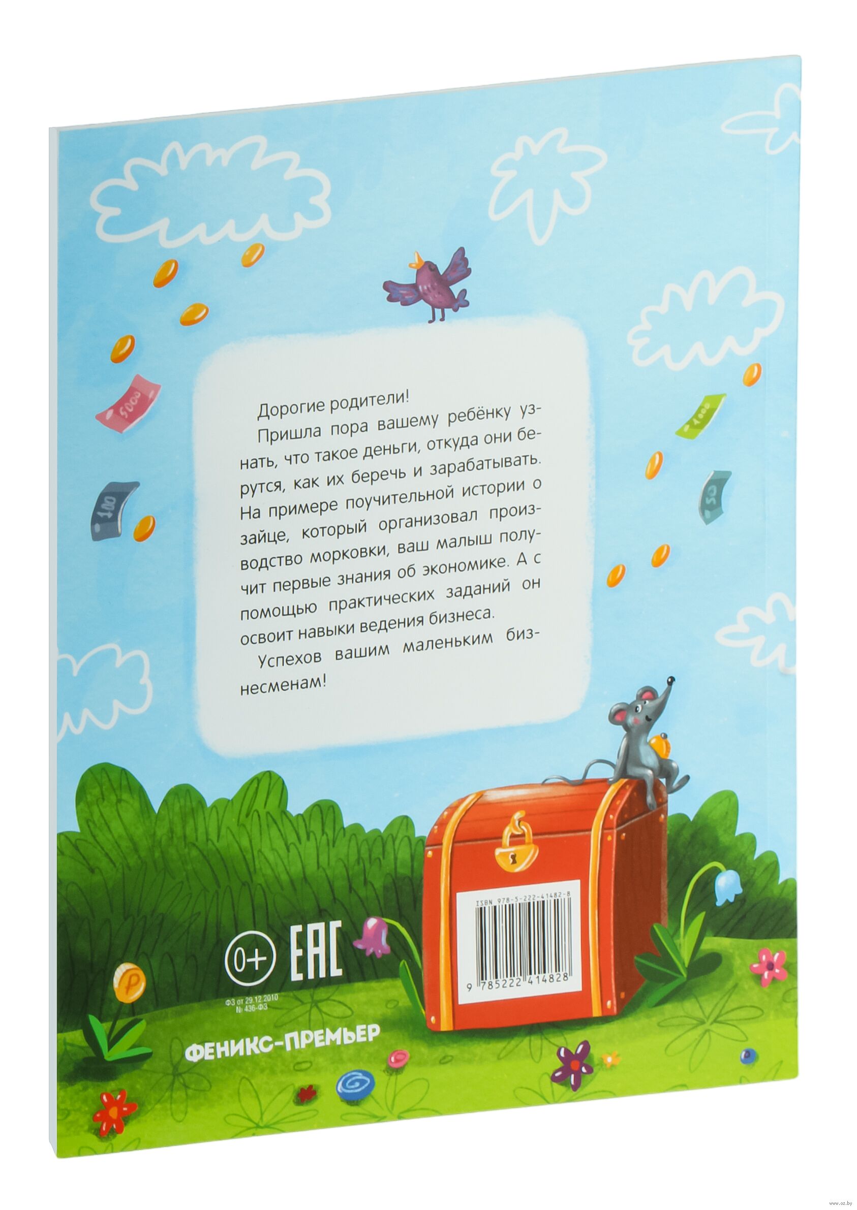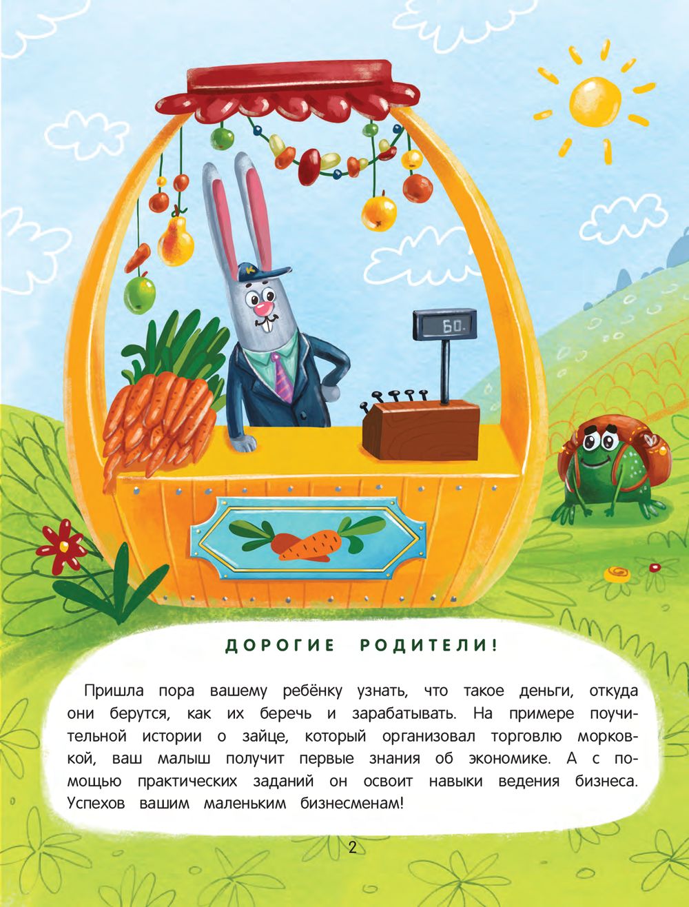 Дорогие родители! Пришла пора вашему ребёнку узнать, что такое деньги, откуда они берутся, как их беречь и зарабатывать. На примере поучительной истории о зайце, который открыл производство морковки, ваш малыш получит первые знания об экономике. А с помощью практических заданий он освоит навыки ведения бизнеса. Успехов вашим маленьким бизнесменам!