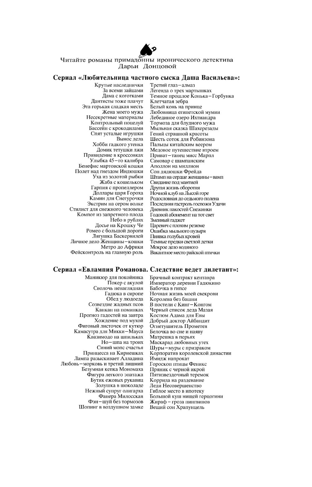 | Серия | Двойной иронический детектив Д. Донцовой |