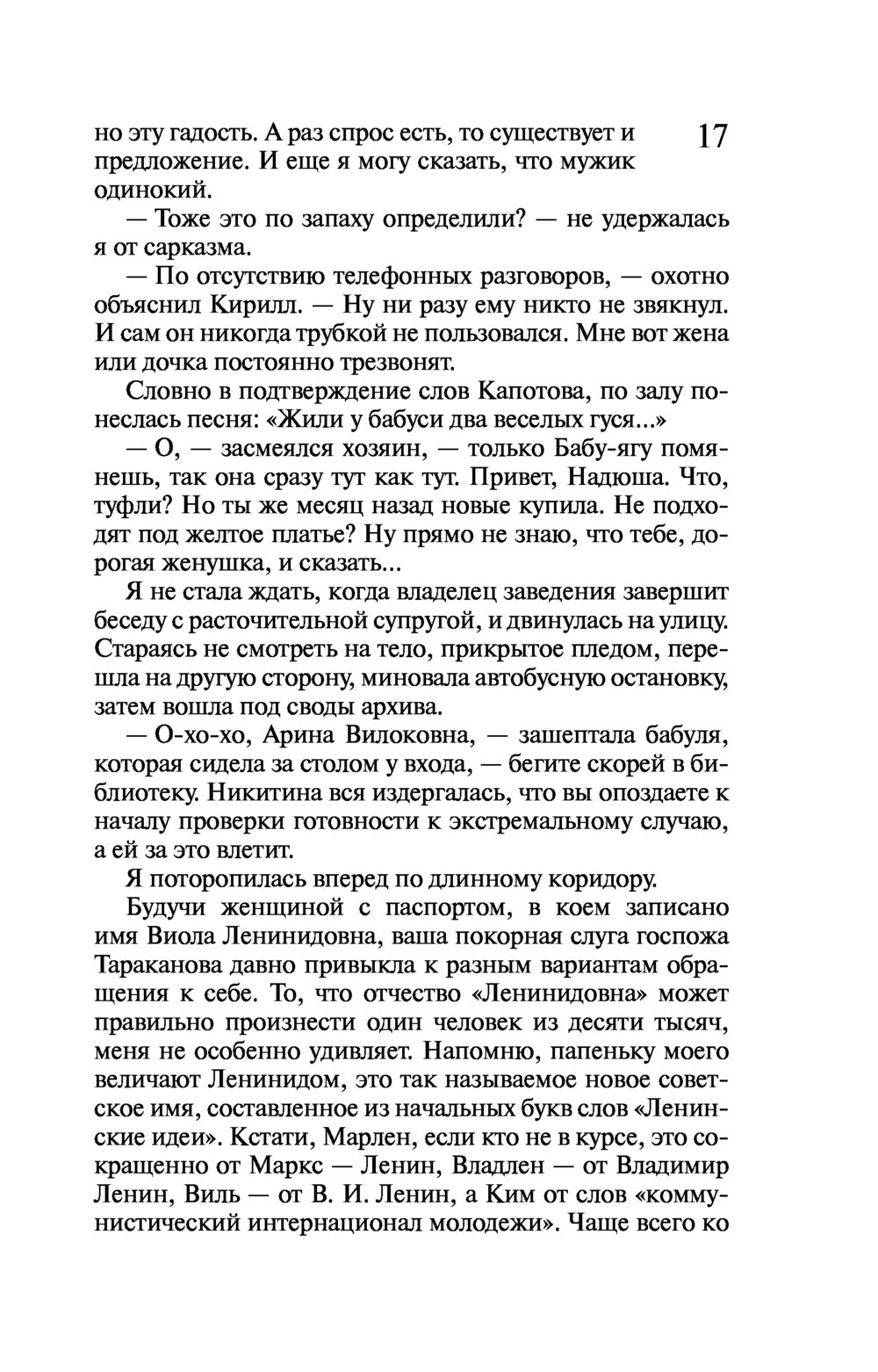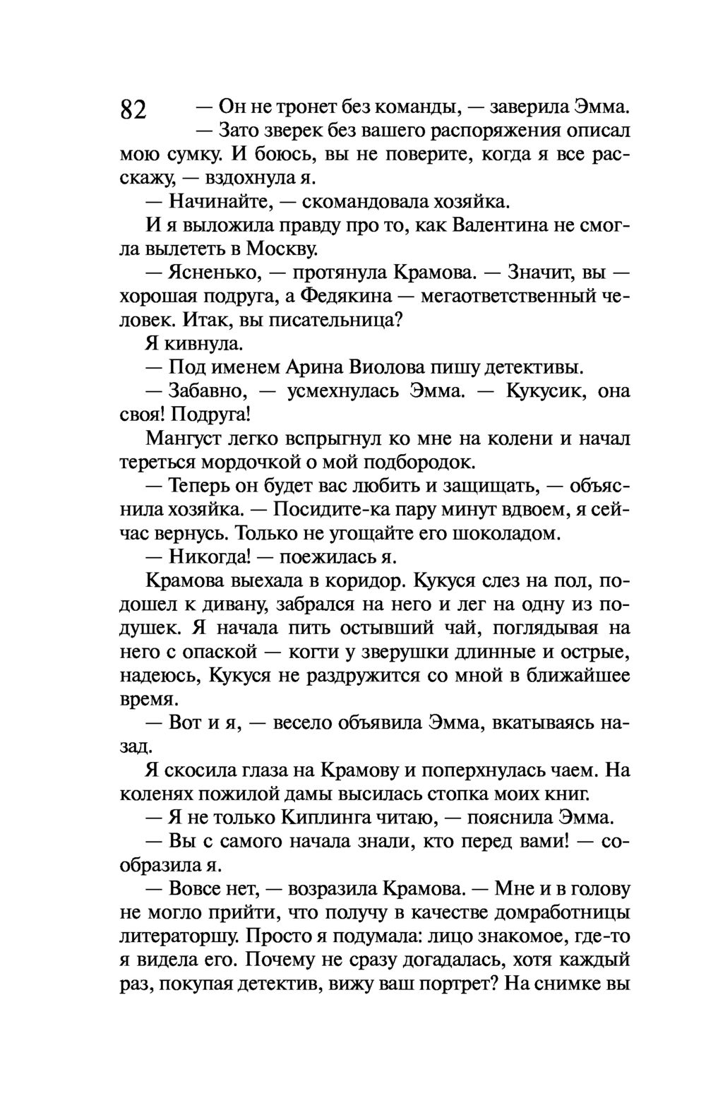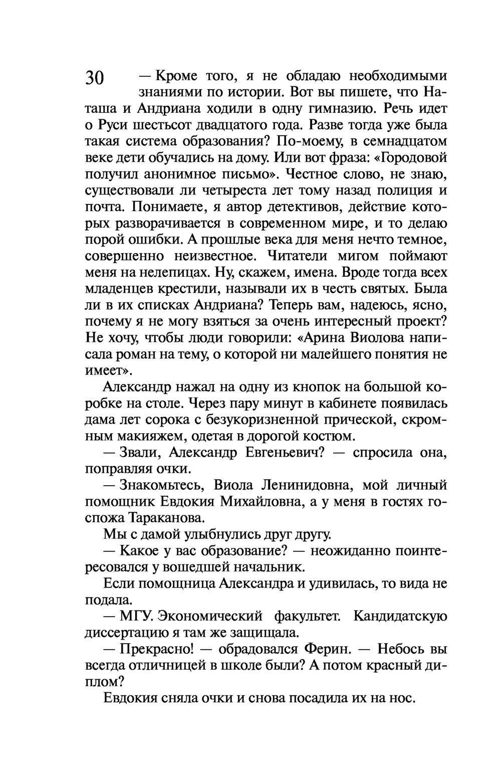 Виола Тараканова собралась замуж за своего верного Степана! Пока жених в командировке, невеста опять вляпалась в историю. Прямо на глазах у Виолы в ресторане убивают мать олигарха Ферина, заказавшего писательнице создать книгу по его сюжету. Причем стреляет бывший одноклассник бизнесмена! С чего вдруг тихий историк-архивист взялся за пистолет?.. Конечно, чтобы разобраться в этой истории, Виола Тараканова полезет в гущу событий, а там обнаружится та-а-акое... Никаких "вдруг" не бывает, все в нашей жизни закономерно – действие равно противодействию. А если проще – как аукнется, так и откликнется. Сделал что-то дурное в юности, это дурное тебя через много лет настигнет...