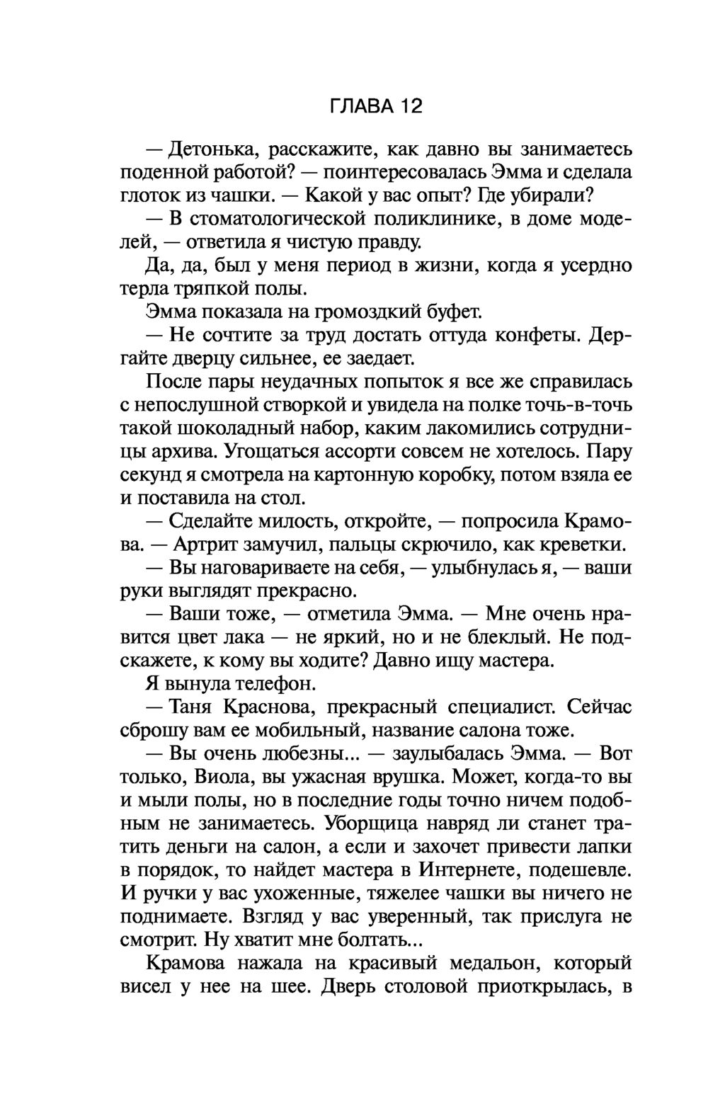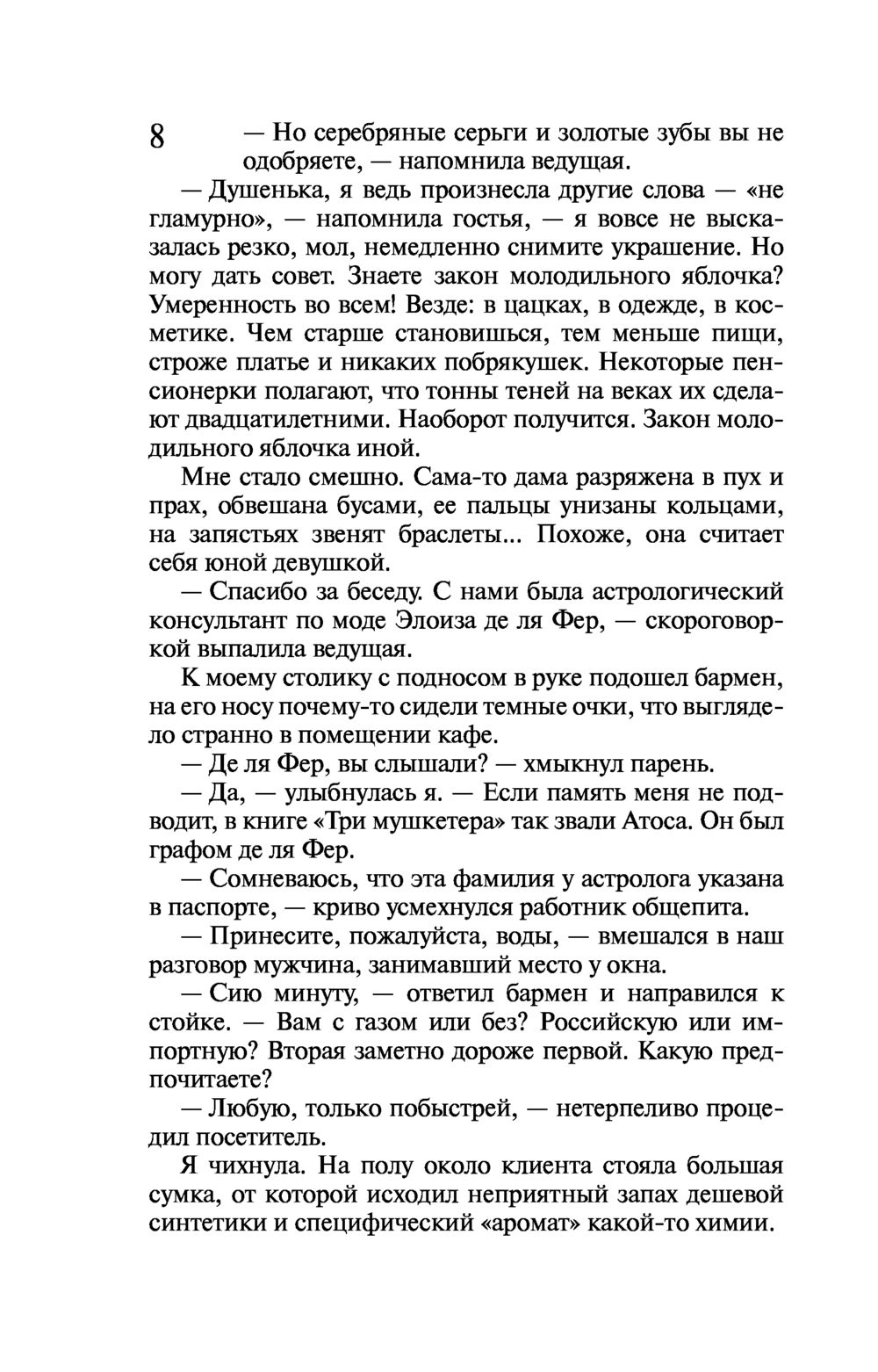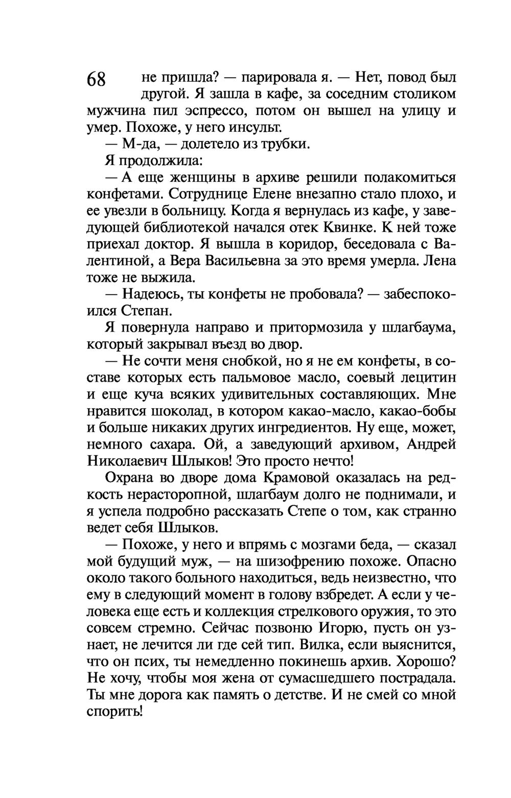 Виола Тараканова собралась замуж за своего верного Степана! Пока жених в командировке, невеста опять вляпалась в историю. Прямо на глазах у Виолы в ресторане убивают мать олигарха Ферина, заказавшего писательнице создать книгу по его сюжету. Причем стреляет бывший одноклассник бизнесмена! С чего вдруг тихий историк-архивист взялся за пистолет?.. Конечно, чтобы разобраться в этой истории, Виола Тараканова полезет в гущу событий, а там обнаружится та-а-акое... Никаких "вдруг" не бывает, все в нашей жизни закономерно – действие равно противодействию. А если проще – как аукнется, так и откликнется. Сделал что-то дурное в юности, это дурное тебя через много лет настигнет...