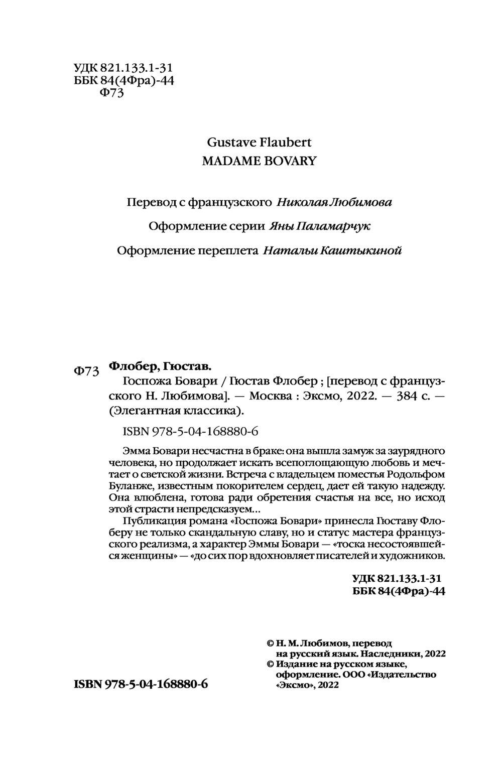 "Госпожа Бовари" принесла Гюставу Флоберу не только скандальную славу, но и статус мастера французского реализма, а характер Эммы Бовари – "тоска несостоявшейся женщины", до сих пор вдохновляет писателей и художников. Героиня несчастна в браке: она вышла замуж за заурядного человека, но продолжает искать всепоглощающую любовь и мечтает о светской жизни. Встреча с владельцем поместья Родольфом Буланже, известным покорителем сердец, дает ей такую надежду. Она влюблена, готова ради обретения счастья на все, но исход этой страсти непредсказуем...