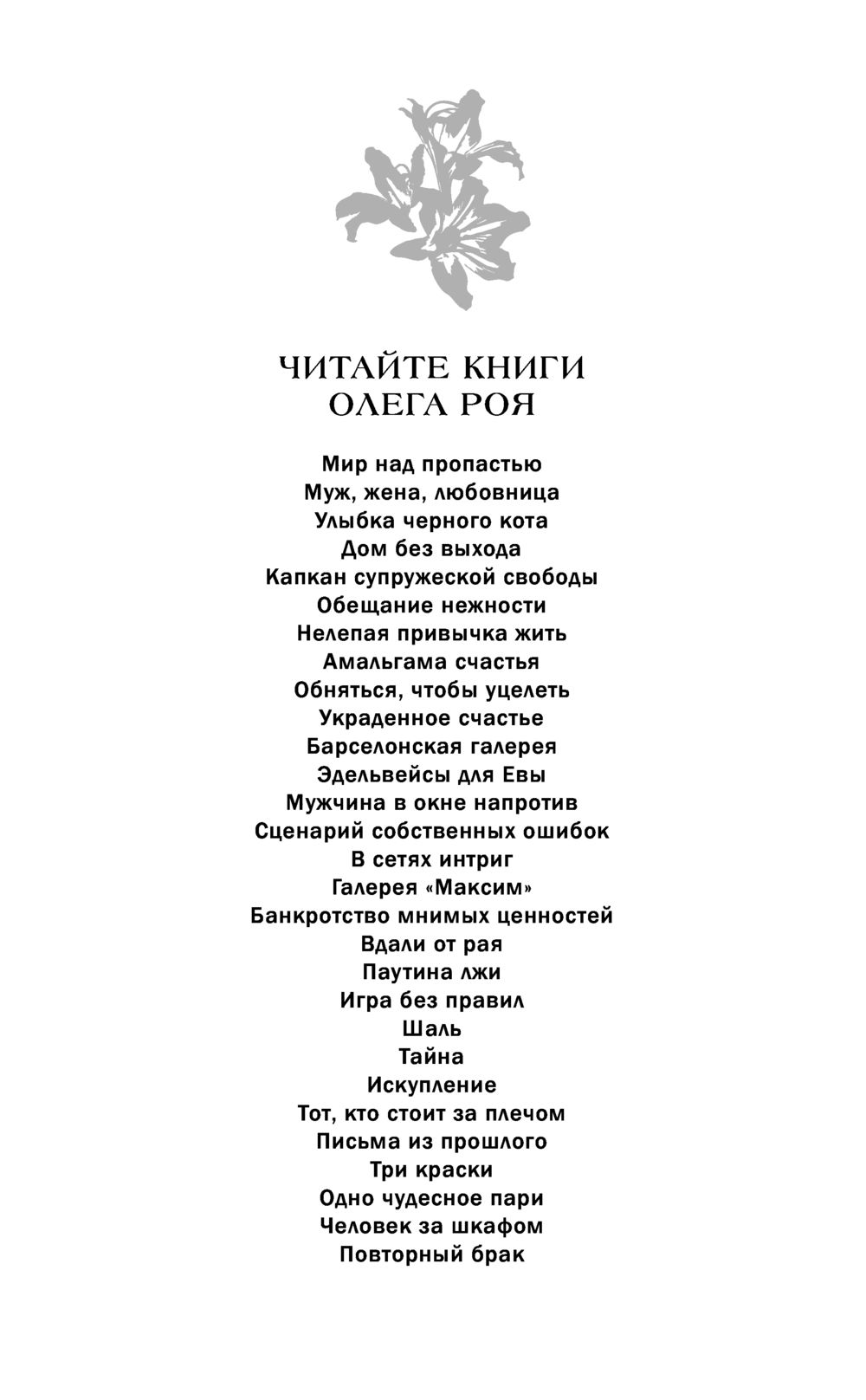 | Серия | Цветочная коллекция. Романы Олега Роя |