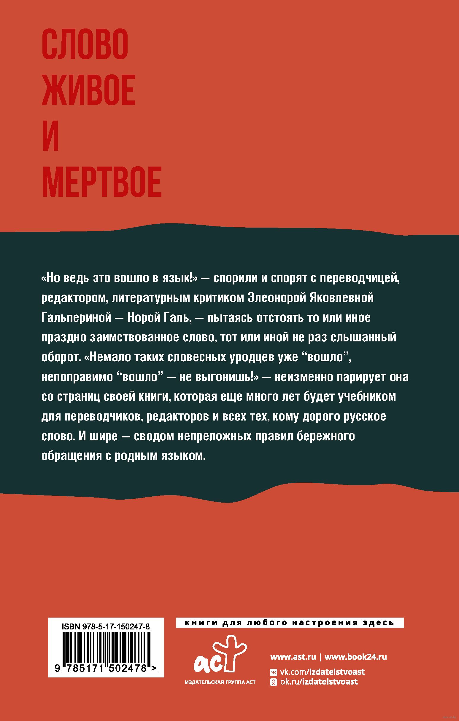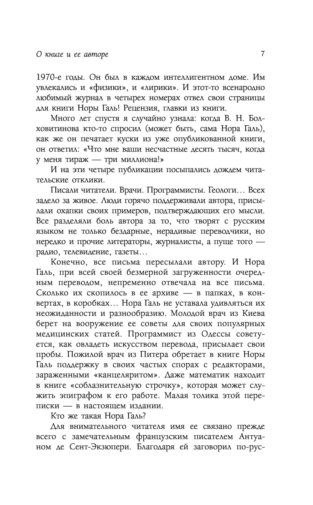 "Но ведь это вошло в язык!" – спорили и спорят с переводчицей Норой Галь, пытаясь отстоять то или иное праздно заимствованное слово, тот или иной не раз слышанный оборот. "Немало таких словесных уродцев уже "вошло", непоправимо "вошло" – не выгонишь!" – неизменно парирует она со страниц своей книги, которая еще очень долго будет учебником для переводчиков, редакторов и всех тех, кому дорого русское слово. И шире – сводом непреложных правил бережного обращения с родным языком.