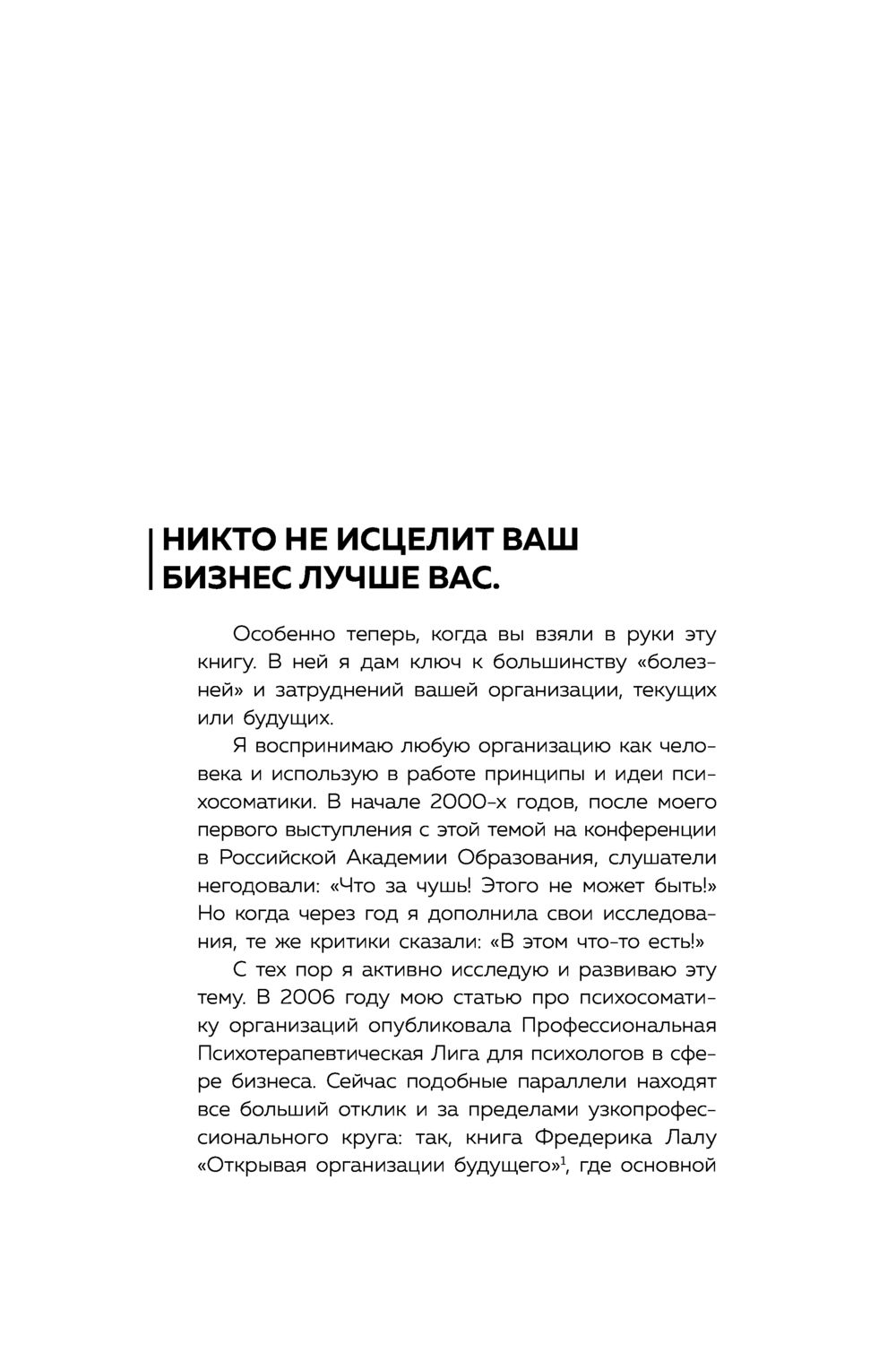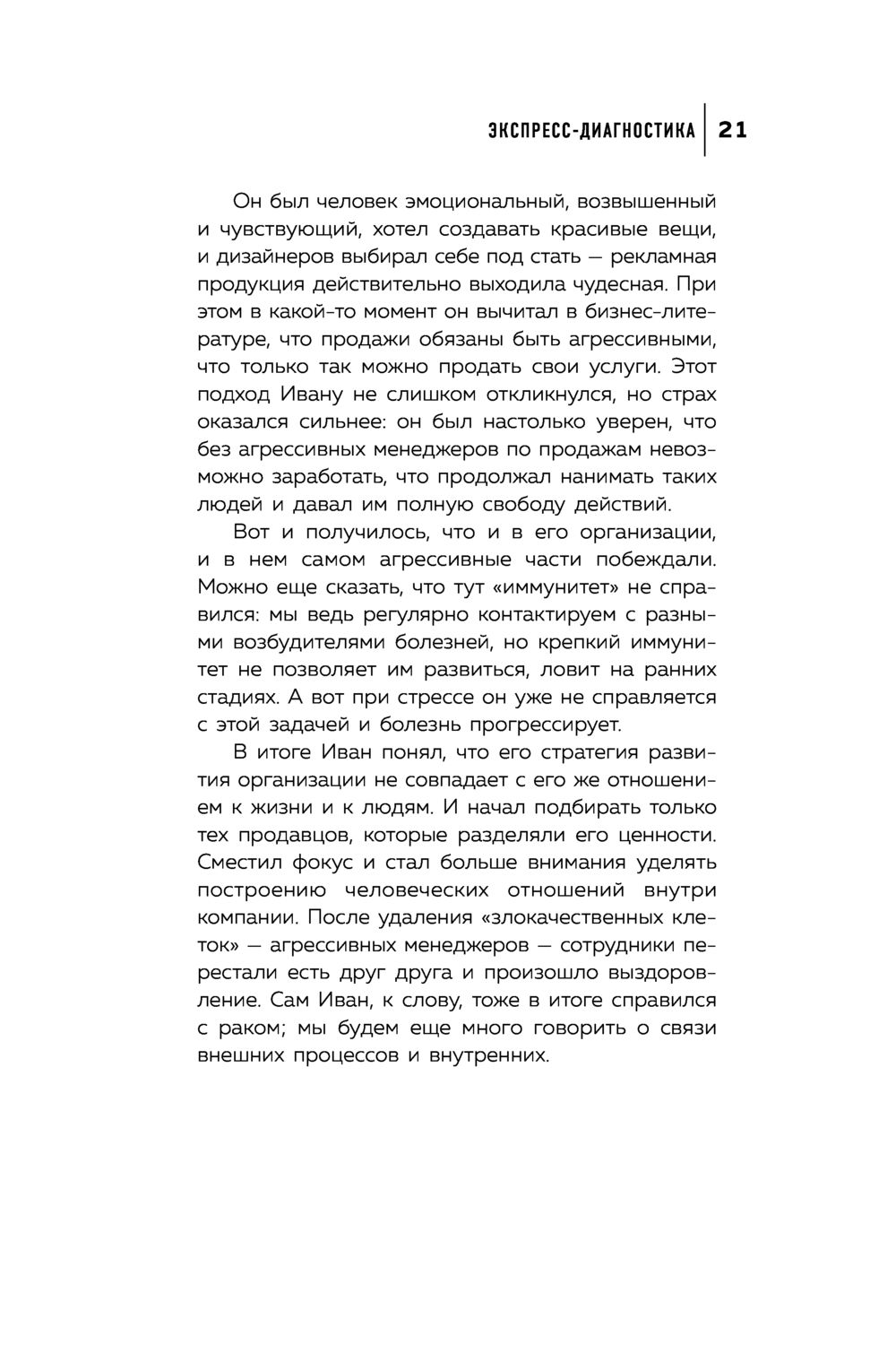 "Крылатая фраза гласит: все болезни от нервов. Вот только в организациях в роли нервов выступают люди. Эта книга помогает понять, почему компания заросла мхом или превратилась в проходной двор, исправить эту ситуацию и подняться на новые высоты"! – Татьяна Мужицкая, психолог, бизнес-тренер, писатель, телеведущая