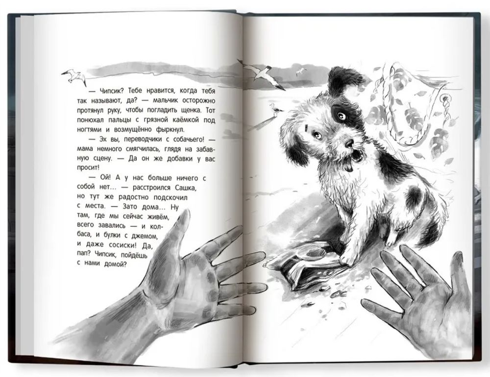 Каким бывает счастье? У Сашки оно цвета моря с привкусом солёных брызг и горячей кукурузы. А для щенка Чипсика счастье – это наконец обрести свой дом и маленького хозяина. Кажется, солнце, море и дружба теперь буду с Сашкой и Чипсиком всегда! Но в скором времени им всё же придётся пережить разлуку... Теперь Сашке предстоит убедить папу совершить подвиг, а щенку провести несколько бесконечных дней в аэропорту южного города.