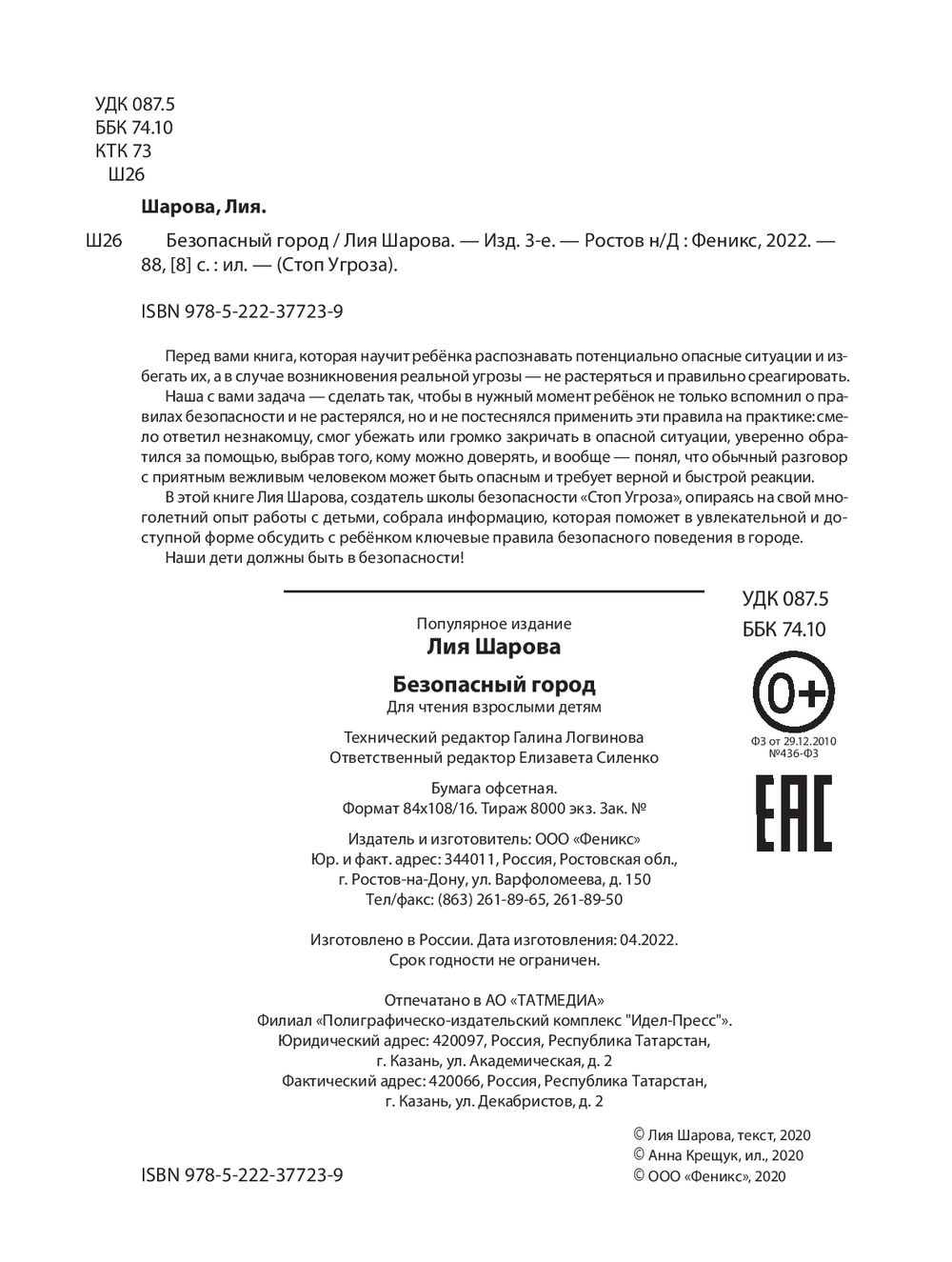 В этой книге Лия Шарова, создатель школы безопасности "Стоп Угроза", опираясь на свой многолетний опыт работы с детьми, собрала информацию, которая поможет в увлекательной и доступной форме обсудить с ребёнком ключевые правила безопасного поведения в городе. Наши дети должны быть в безопасности!