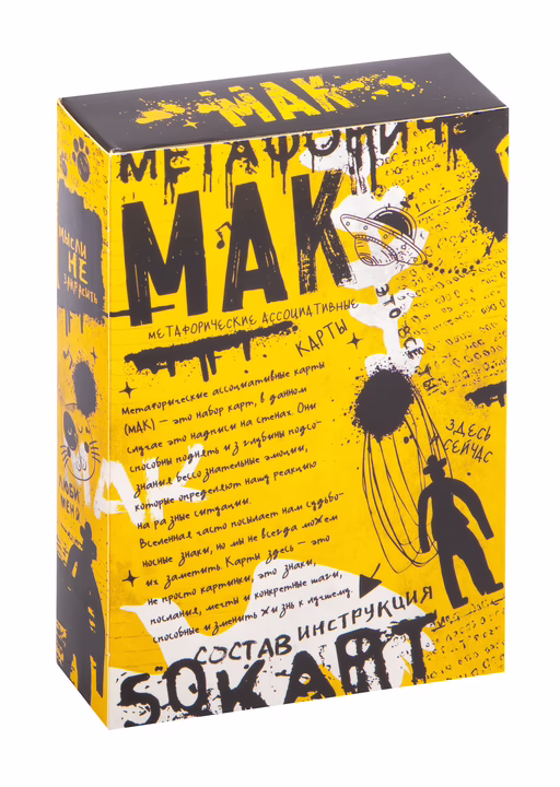 Метафорические ассоциативные карты (МАК) – это набор картинок, которые помогут заглянуть вглубь подсознания и получить ответы на интересующие вопросы. В колоде "Подсказки судьбы" вас ждут надписи и граффити на стенах. Благодаря этой колоде вам не придётся всюду искать знаки. Карты здесь – это не просто картинки, это знаки, послания, мечты и конкретные шаги, способные изменить жизнь к лучшему.