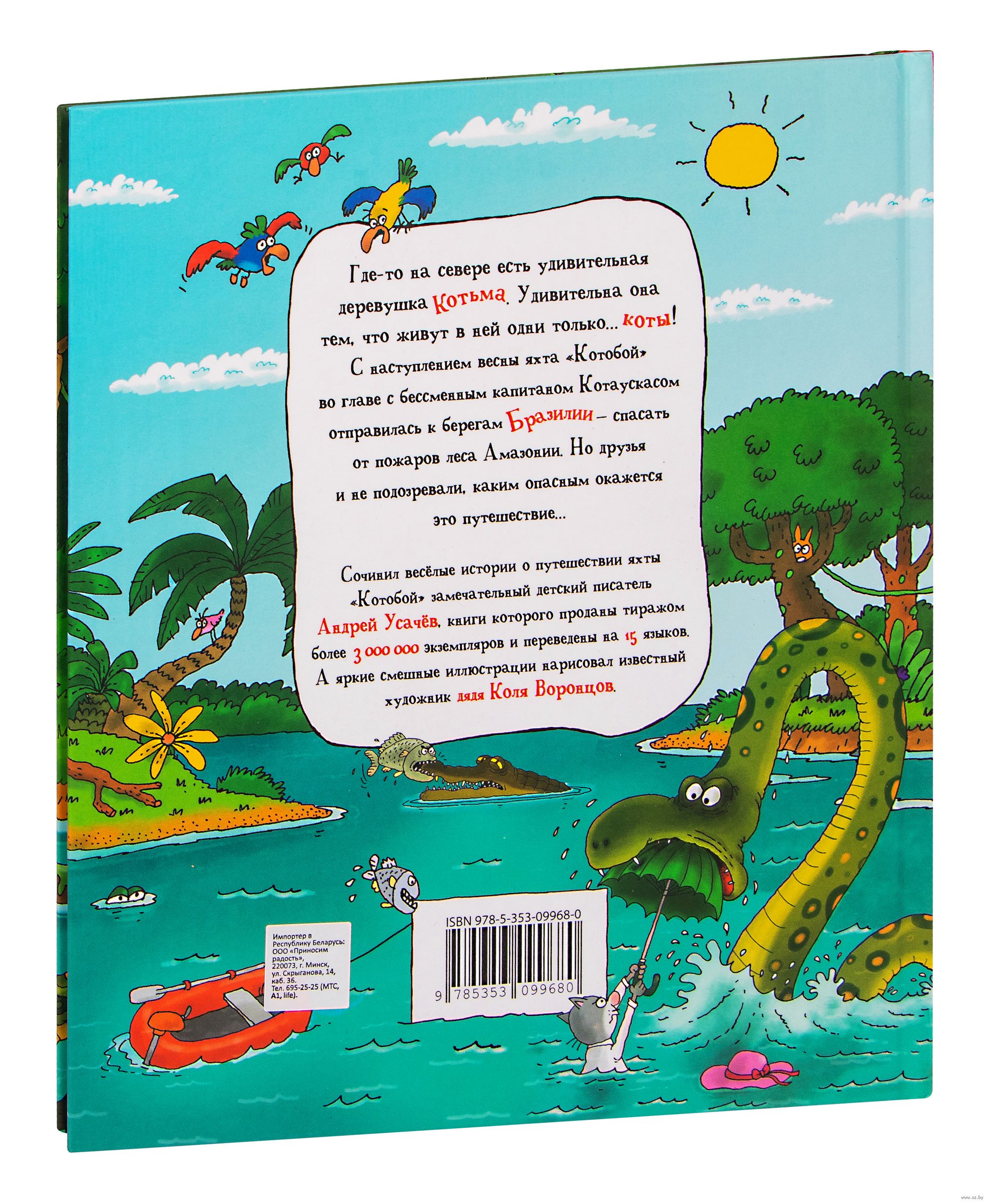 Где-то на Севере есть удивительная деревушка Котьма. Удивительна она тем, что живут в ней одни только... коты! С наступлением весны, едва море освободилось ото льда, команда "Котобоя" отправилась к берегам Бразилии, спасать от пожаров леса Амазонии. Только приключение это оказалось опасным. А как может быть иначе, когда вокруг – дикие животные, болтливые попугаи и коварные черные лесорубы!