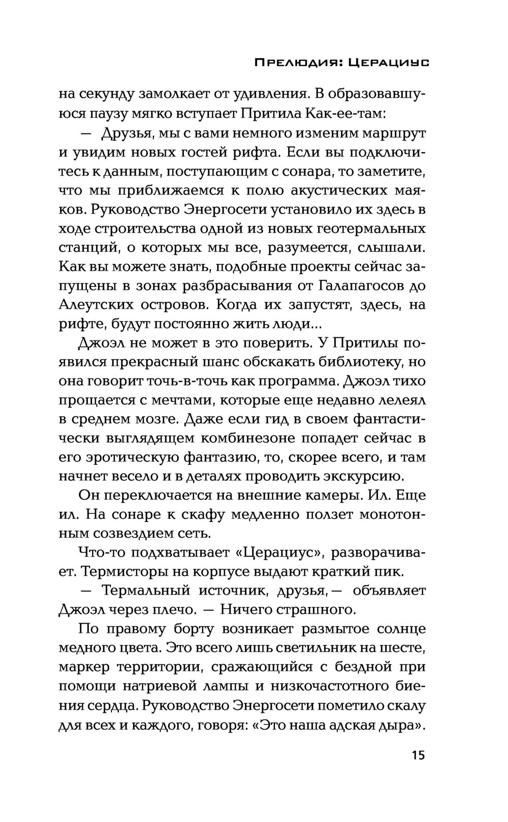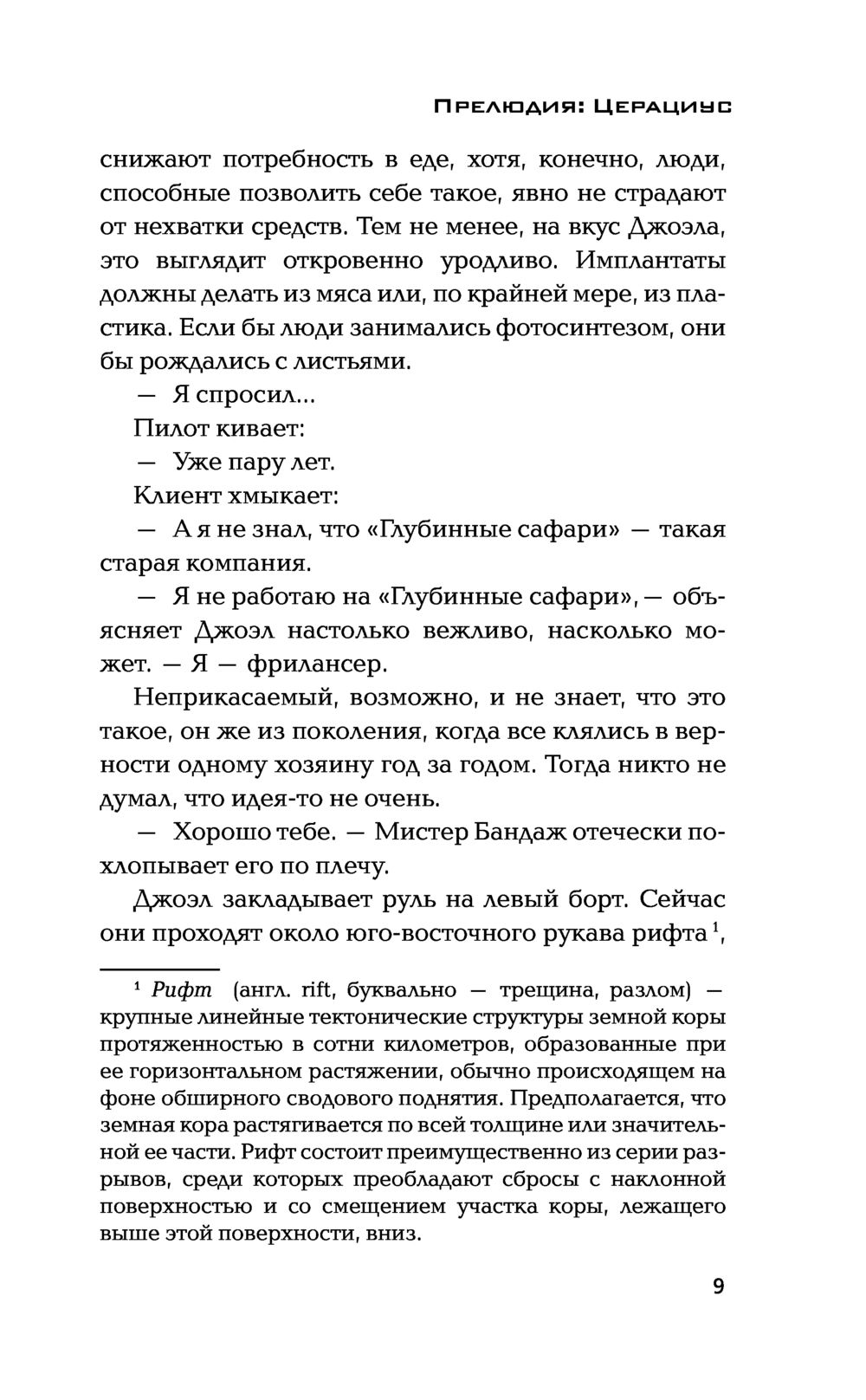 Цивилизация покоится на плечах изгоев. И когда ей нужен кто-то, чтобы управлять энергостанциями, расположенными на глубине трех километров в Тихом океане, она ищет особых людей для программы рифтеров. Тех, кто приспособлен к опасной окружающей среде, тех, кто настолько привык к травмам и хроническому стрессу, что жизнь на краю подводного вулкана станет для них облегчением. Но среди утесов и впадин хребта Хуан де Фука есть вещи, которые никто не ожидал найти, а достаточное количество давления даже привычную ко всему жертву превратят в человека, сделанного из стали. Но когда наверху понимают, что случилось, изгои и отверженные уже держат в руках тайну, способную погубить весь мир.