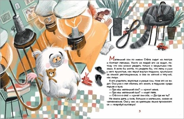 Маленький сон Степка и его родители живут в подушках в квартире Лохматовых. Лохматовы – это мама, папа и Димка. А сны – это мама Дррыхрра, папа Хррапхх и Степка. Дррыхрра и Хррапхх – приличные, взрослые сны, а маленький Степка – тот еще проказник: то голубю мышиный сон покажет, то комару – пчелиный. А главное – все проделки Степки немножко сбываются. Этим летом Лохматовы переезжают на дачу, и сны вместе с ними. У Степки на дачу большие планы, ведь там можно присниться и курицам, и белкам, и картошкам, и дождю, и земле... В общем, никому скучать не придется!