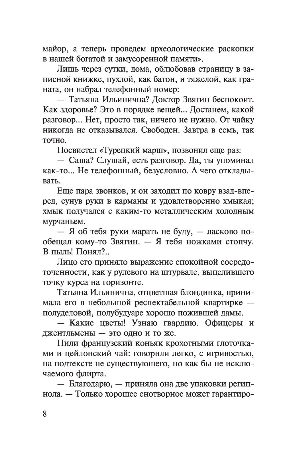 Книга оставила неоднозначное впечатление. Майор Звягин - воплощение Робин Гуда, Джеймса Бонда и Супермена в одном лице. Время действия как я поняла - конец 80-х, начало 90-х годов. Звягин работает врачом на скорой, у него хорошие швейцарские часы и достаточно сил и свободного времени (а также финансовых ресурсов) для решения серьезных проблем многих людей, что уже само по себе выглядит фантастично. Любые трудности воспринимаются с азартом, под неумеренное количество выпитого молока и насвистывание турецкого марша. Такое ощущение, что человек не рефлексирует совсем. Его методы - сочетание армейской муштры, дисциплины духа, тела и ума, а также юмор в стиле доктора Хауса. Даже странно, что он как-то обзавелся семьей. Хоть это делает его слегка похожим на нормального человека. Странное ощущение от книги. Вроде как духоподъемно, заставляет задуматься о том, что человек в состоянии вытащить себя из любой проблемной ситуации, вернуть уверенность, жизнелюбие, даже полным неудачникам и безнадежно больным людям. Но после прочтения остается какое-то раздражение на Звягина. Он картонный какой-то, плоский и при всей своей самоотдаче - абсолютно черствый и эгоистичный персонаж.