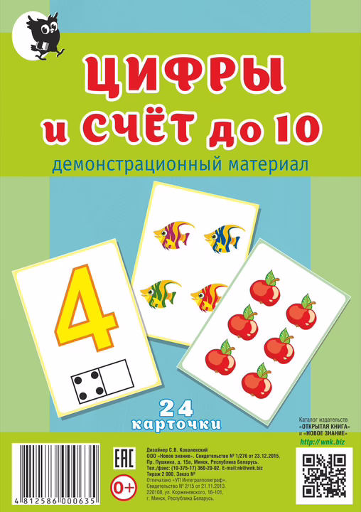 Демонстрационный материал "Цифры и счёт до 10" является практическим пособием для закрепления в памяти ребёнка вида и значения цифр, освоения азов счета и простейших арифметических действий.