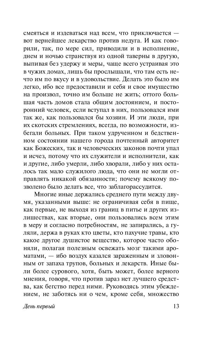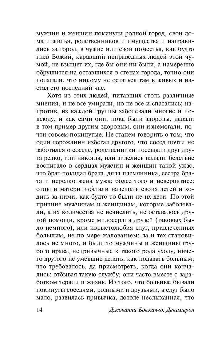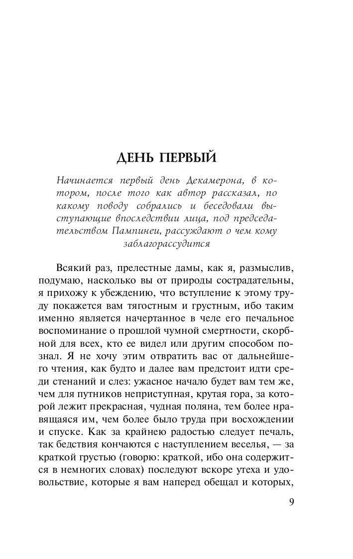 "Декамерон". Величайшее прозаическое произведение Раннего Возрождения, 100 новелл, условно объединенных обрамляющим сюжетом о молодых итальянских кавалерах и их дамах, бежавших в сельское имение от эпидемии чумы и коротающих досуг занимательными историями. И каких историй, – кажется, в них кипит, дышит, смеется и плачет сама Италия XIV века с ее озорным юмором, смесью искренней веры и задиристого вольнодумия, предприимчивостью и лукавством, бурным темпераментом и неукротимой жаждой жизни и любви, счастья и самых разнообразных удовольствий.