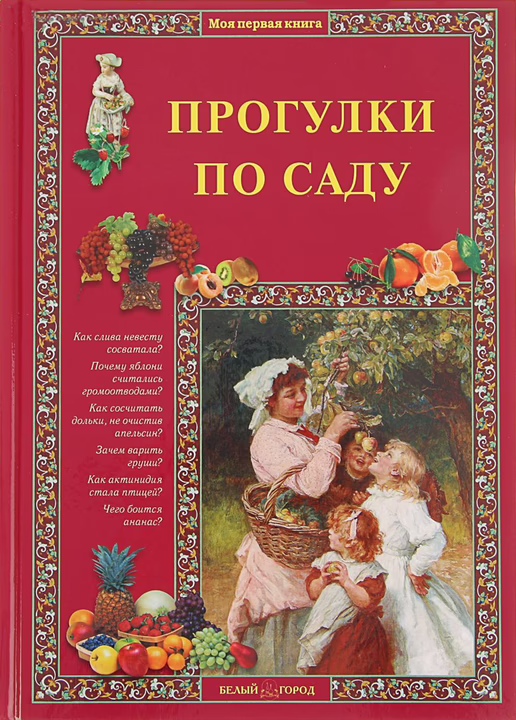 Из книги "Прогулки по саду" вы узнаете, как возникли первые сады на нашей планете, какие удивительные истории и превращения происходили с фруктами на протяжении столетий. Сказки и легенды народов мира, пословицы, поговорки, загадки о фруктах и ягодах органично вплетаются в короткие рассказы. Старинные ботанические иллюстрации, древние фрески и мозаики, репродукции картин русских и зарубежных художников, а также современные цветные фотографии позволят сделать "фруктовое путешествие" красочным, ярким и познавательным.