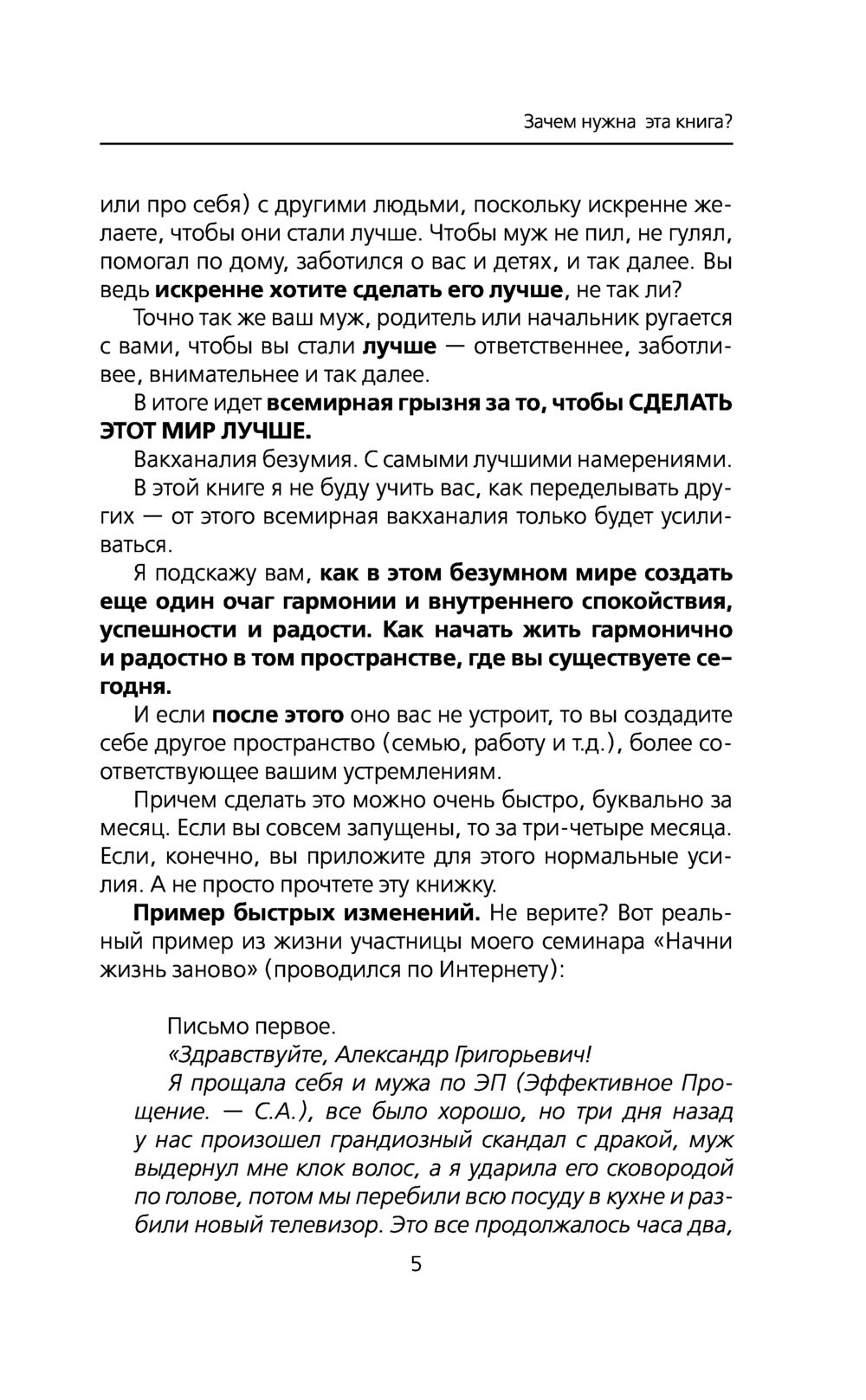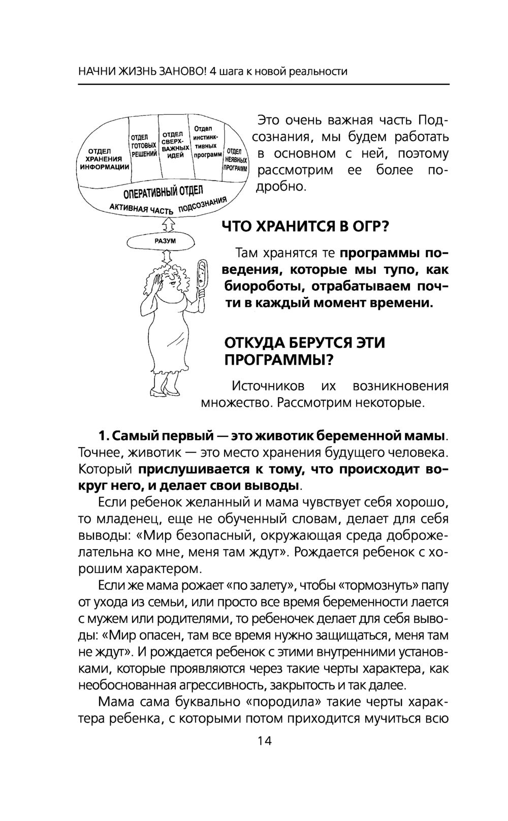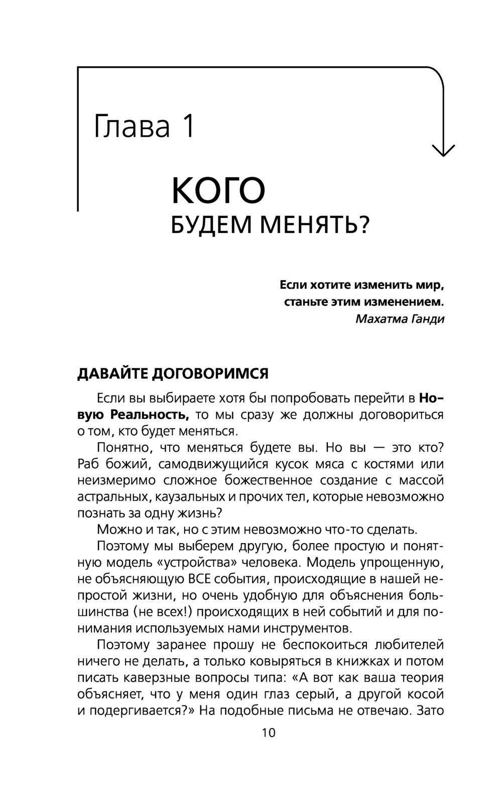 Что мы будем менять? Не окружающий мир, не других людей, как бы вам этого ни хотелось. В книге "Начни жизнь заново! 4 шага к новой реальности" вы получите технологию изменения себя. Потому что именно вы ответственны за то, что имеете сегодня, – за ваше здоровье, доходы, отношения и все остальное. Это не книжка для чтения, а инструкция по переходу в новую реальность, по созданию пространства гармонии, внутреннего спокойствия, успешности и радости.