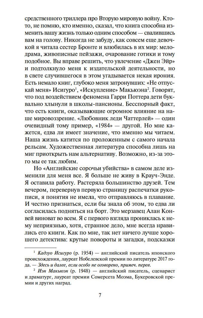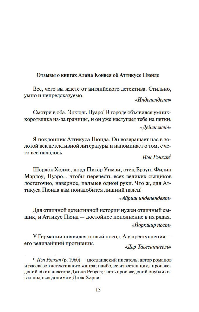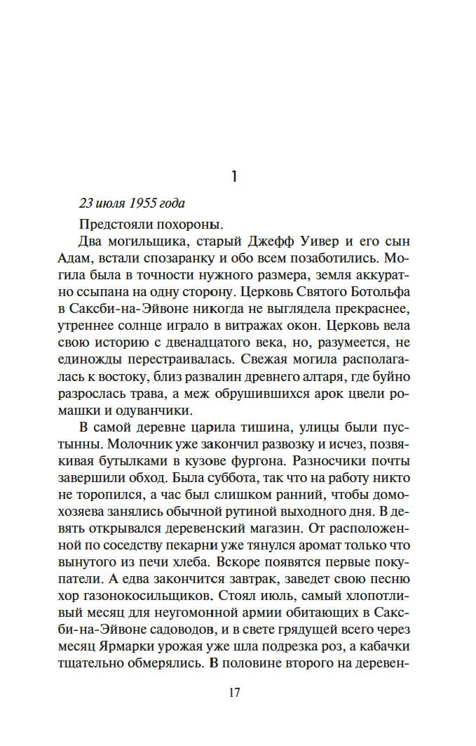 Известие о смерти Алана Конвея, автора того самого детектива, застает ее врасплох. Он покончил с собой? Стал жертвой несчастного случая? Но Сьюзен не зря двадцать лет редактировала книги криминального жанра, дедуктивный метод знаком ей не понаслышке. Сопоставив некоторые факты, она приходит к выводу, что произошло замаскированное убийство, и с риском для жизни начинает распутывать этот детективный клубок...