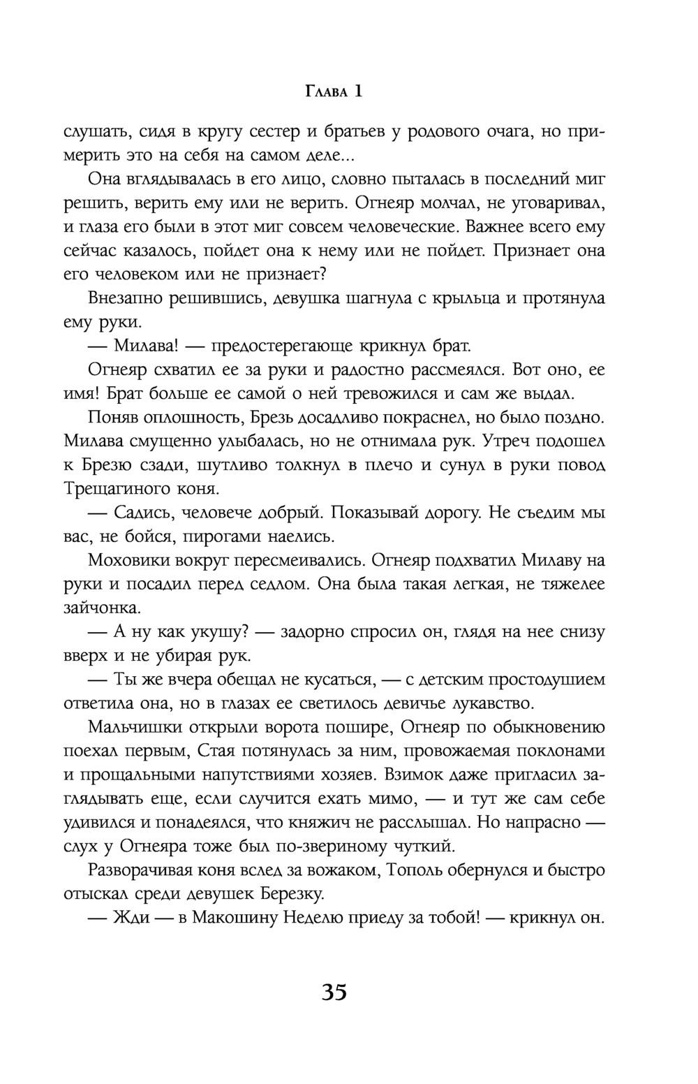 Обидевшись на весь человеческий род, который не признает его своим, Огнеяр уходит жить к волкам. Единственное, что привязывает его к людям – любовь к матери и к девушке из лесного рода Вешничей, Милаве.