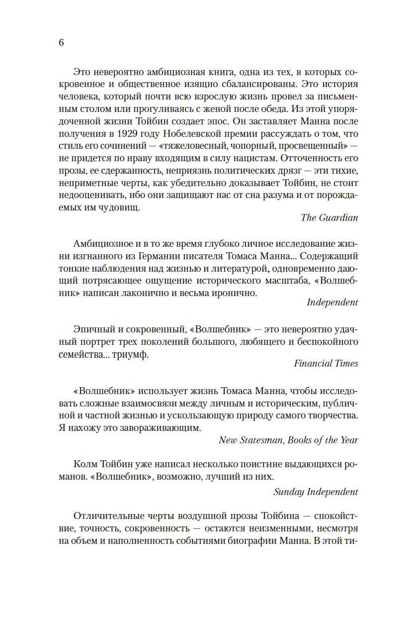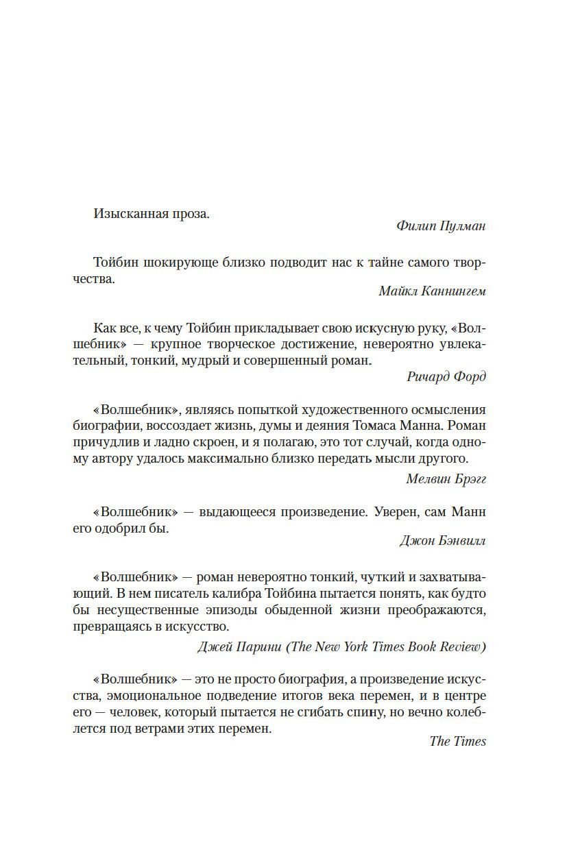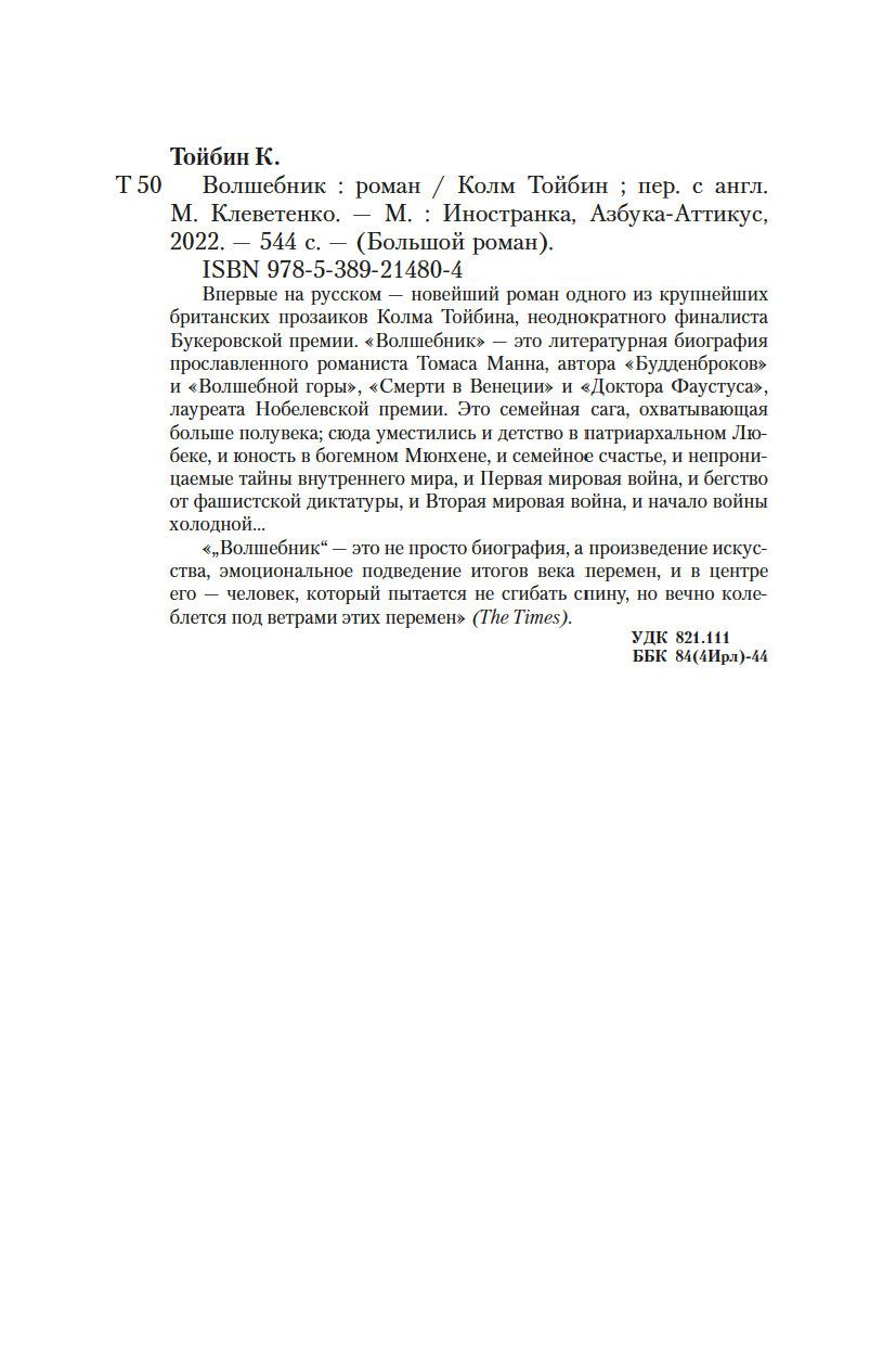"Волшебник" – это литературная биография прославленного романиста Томаса Манна, автора "Будденброков" и "Волшебной горы", "Смерти в Венеции" и "Доктора Фаустуса", лауреата Нобелевской премии. Это семейная сага, охватывающая больше полувека; сюда уместились и детство в патриархальном Любеке, и юность в богемном Мюнхене, и семейное счастье, и непроницаемые тайны внутреннего мира, и Первая мировая война, и бегство от фашистской диктатуры, и Вторая мировая война, и начало войны холодной...