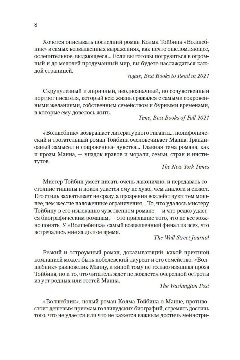 "„Волшебник" – это не просто биография, а произведение искусства, эмоциональное подведение итогов века перемен, и в центре его – человек, который пытается не сгибать спину, но вечно колеблется под ветрами этих перемен" (The Times).