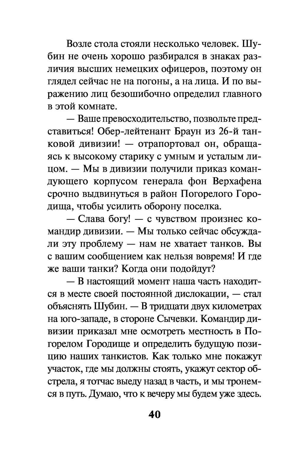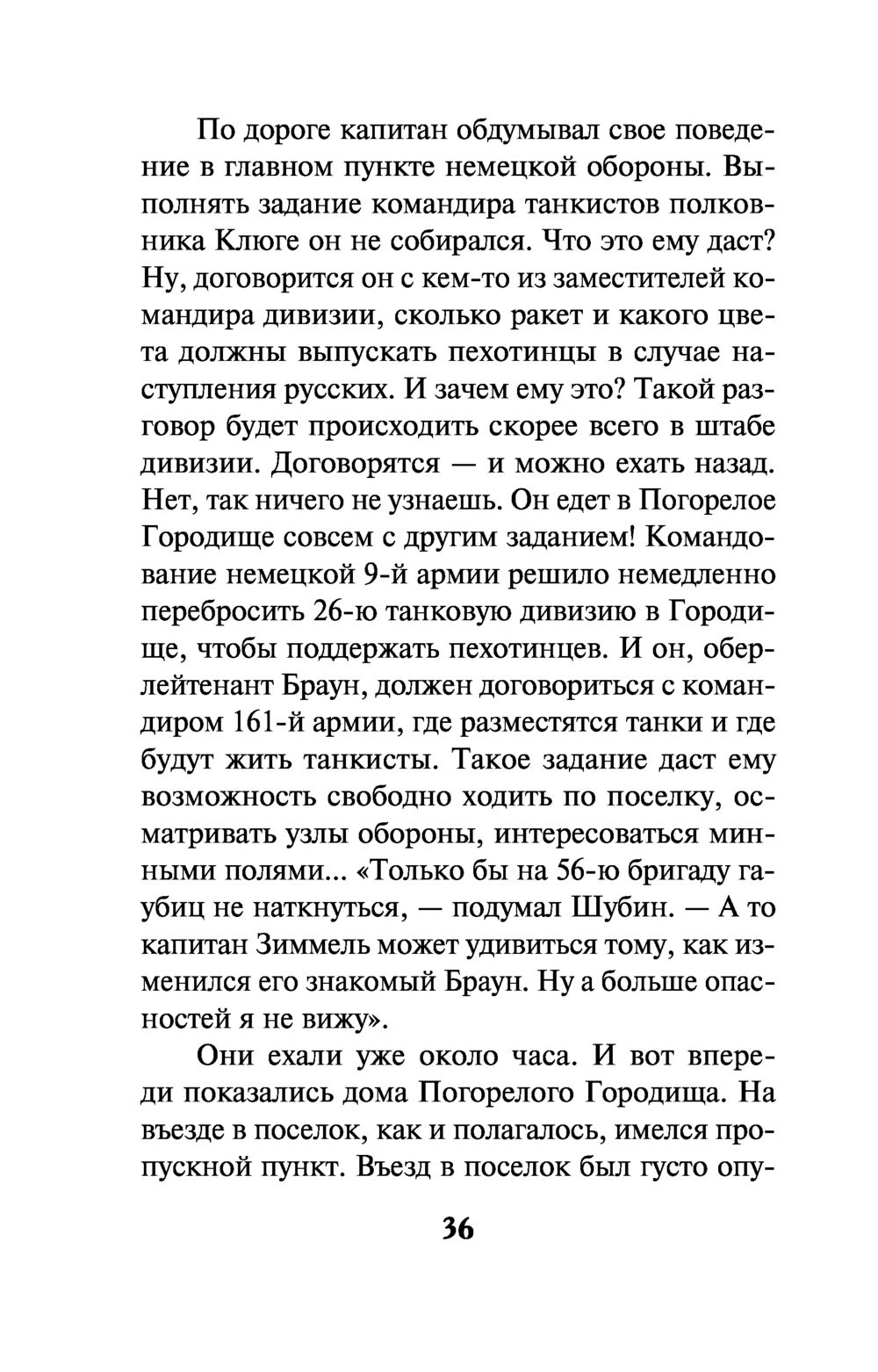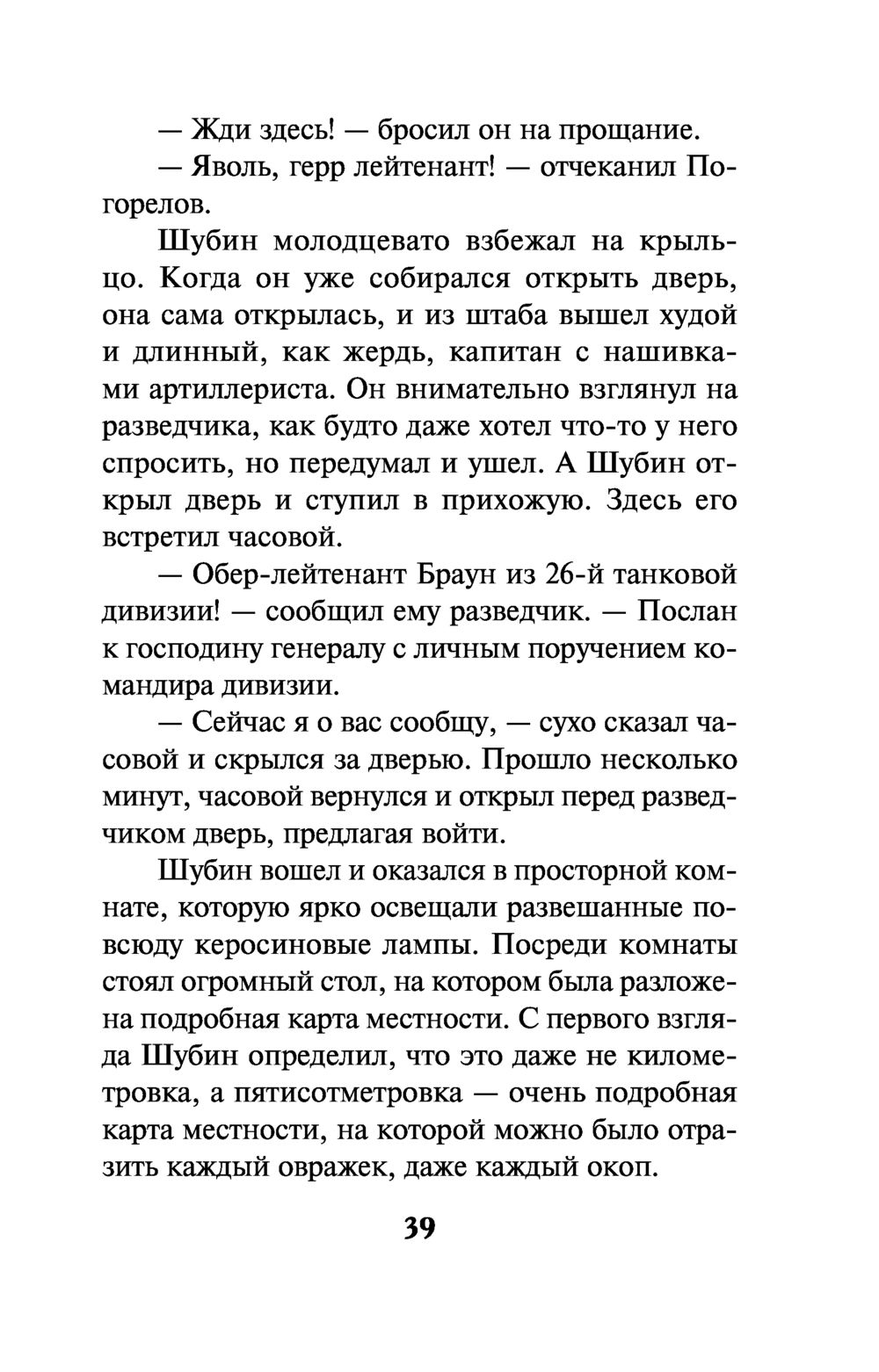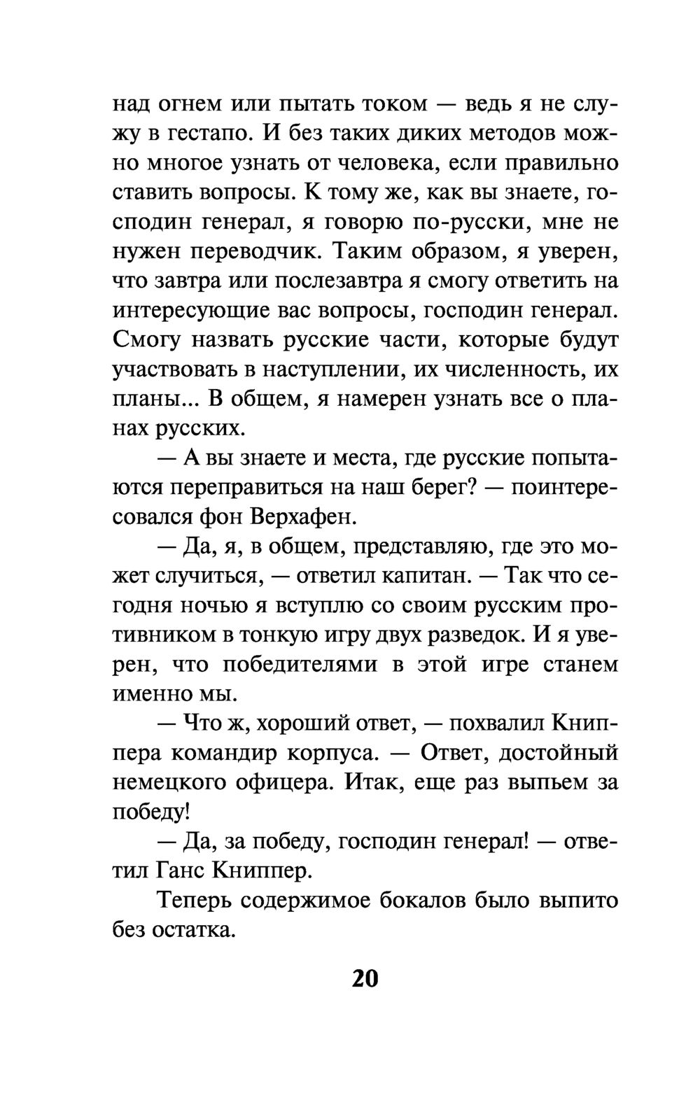 1942 год. Накануне Ржевско-Сычевской операции группе разведчиков капитана Глеба Шубина поручено выяснить, где находятся узлы обороны противника и его минные поля. Скрытно переправившись через реку, бойцы выходят к укрепленной линии немецкой обороны. Чтобы преодолеть неприступные позиции, Шубин идет на хитрость: он направляется к ближайшему населенному пункту, переодевшись в немецкую форму. Там он сталкивается с начальником корпусной разведки немцев, который поначалу не распознает в незнакомце советского диверсанта. Ни капитан Шубин, ни уверенный в себе немец не знают, что эта случайная встреча станет роковой для них обоих...
