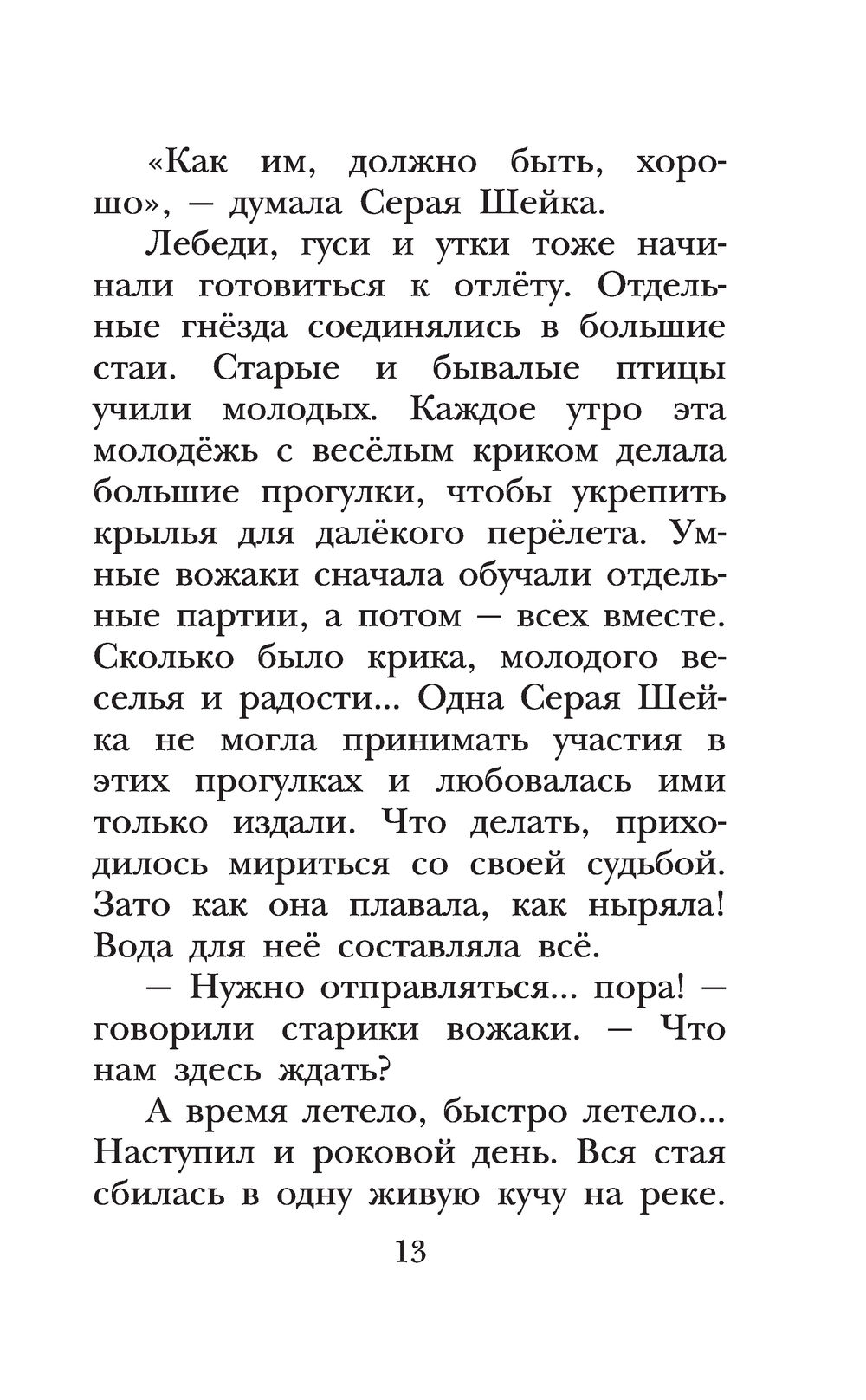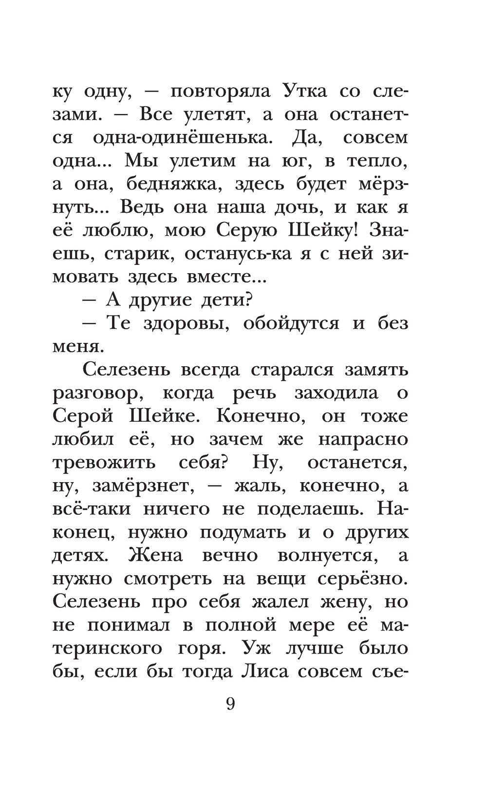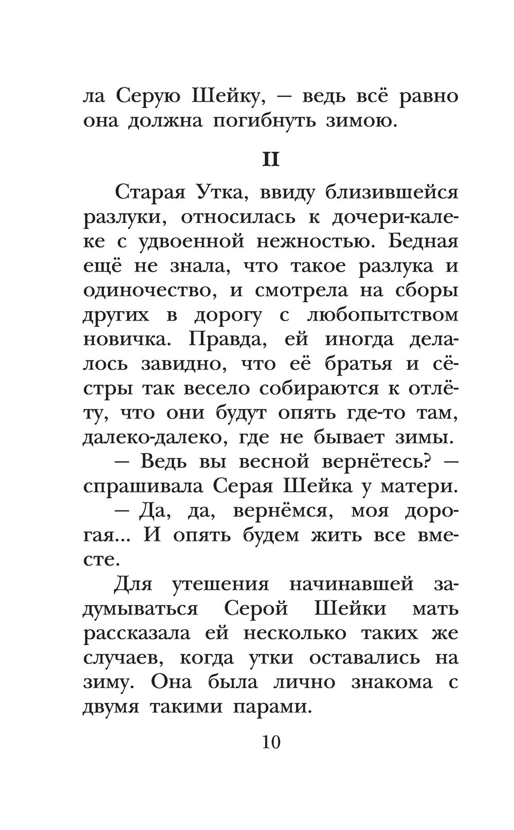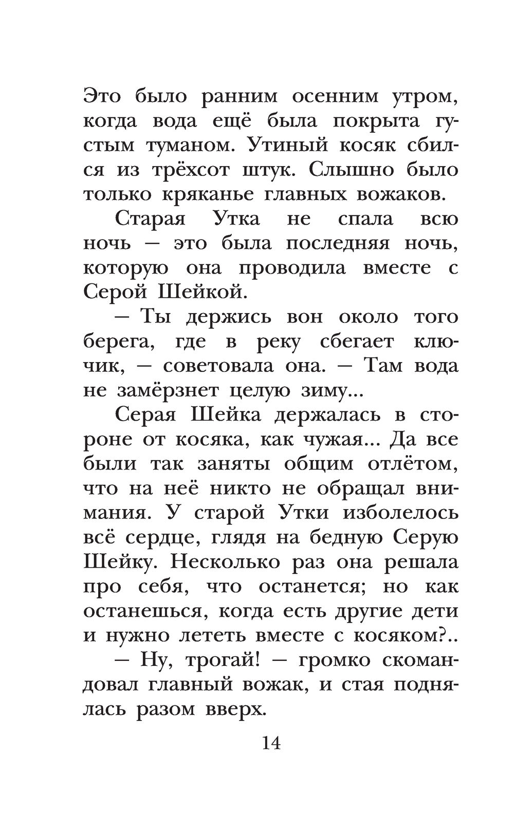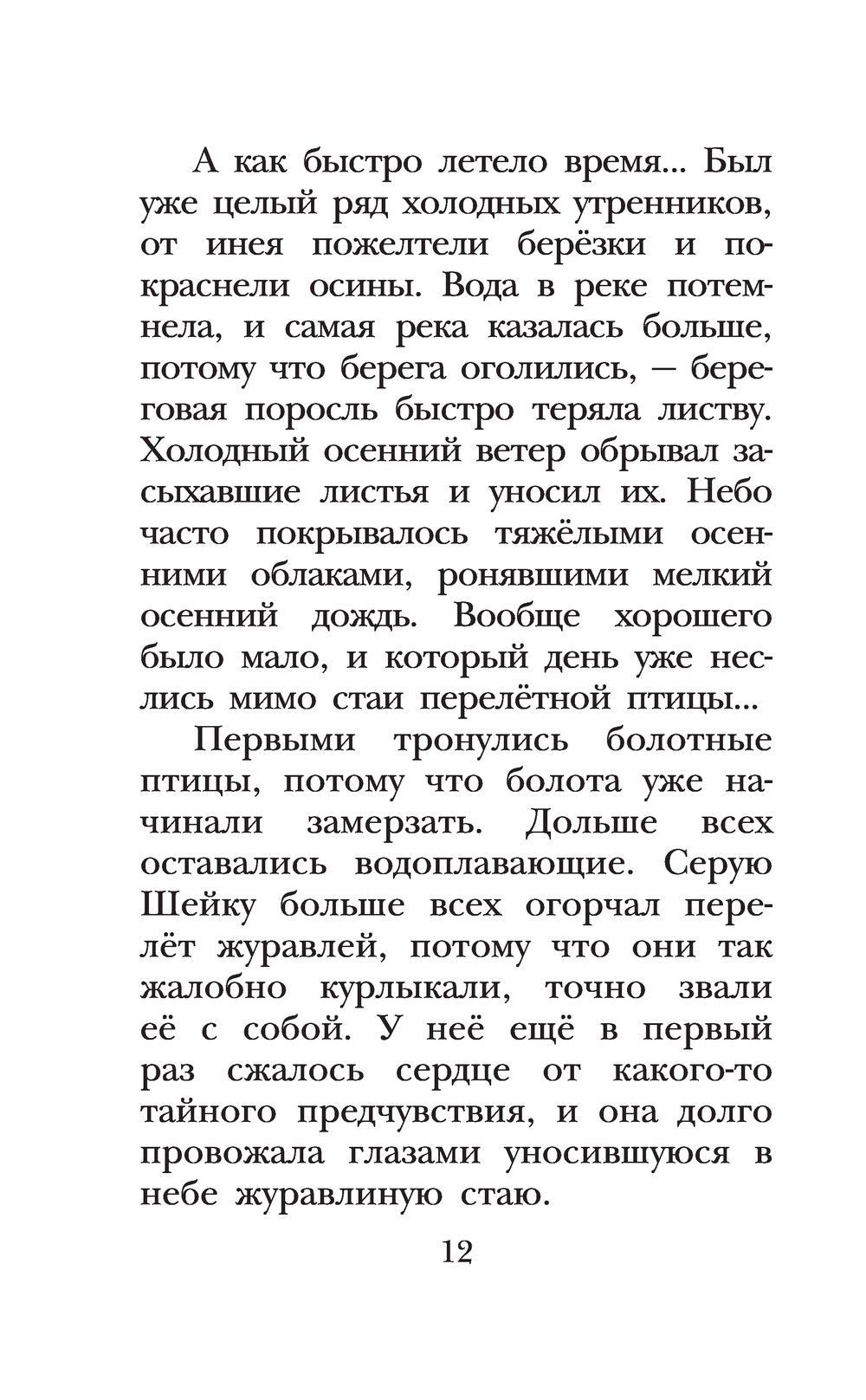 В сборник вошли самые знаменитые, трогательные и поэтичные произведения Д. Н. Мамина-Сибиряка, написанные для детей. "Серая Шейка" расскажет о сильной и смелой уточке, которая не смогла отправиться со своей стаей на юг и вынуждена была провести суровую зиму в одиночестве. "Алёнушкины сказки" – цикл произведений, который включает "Сказку про храброго Зайца – длинные уши, косые глаза, короткий хвост", "Сказочку про Козявочку", "Сказку про Комара Комаровича – длинный нос и мохнатого Мишу – короткий хвост", "Притчу о Молочке, овсяной Кашке и сером котишке Мурке" и другие сказки. Они были написаны Д. Н. Маминым-Сибиряком специально для своей горячо любимой дочери.