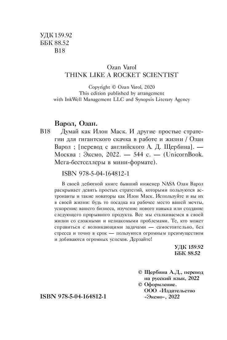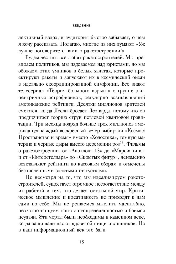 Необязательно быть ракетостроителем, чтобы думать, как один из них! На страницах этой книги вы узнаете, чем мышление инженеров NASA отличается от мышления остальных людей и как вы можете применить его в своей жизни. Отказавшись от страха ошибок, приверженности одной точке зрения и стремлению к определенности во всем, вы сможете иначе взглянуть на свой подход к жизни и конструировать не ракеты, а собственное будущее.
