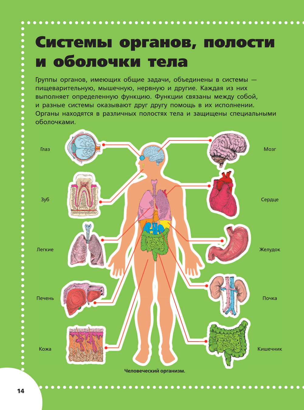 Ты можешь себе представить сложнейший механизм, состоящий более чем из 50 триллионов мельчайших деталей, которые работают в тесном взаимодействии? А ведь примерно таким является твой собственный организм. Составляющие его "кирпичики" – клетки – объединяются в ткани, ткани – в органы, органы – в системы органов, и все они взаимосвязано функционируют, выполняя определенные задачи. Разобраться в этой непростой теме сложно даже взрослым, а тебе в этом поможет данный атлас анатомии человека. На его страницах ты найдешь множество иллюстраций, которые во всех подробностях представляют строение тех или иных органов и частей тела и буквально пошагово показывают, как они работают. В конце каждой темы тебя ждут странички с какими‑то забавными и важными фактами, которые вначале заинтересуют, а затем заставят поверить, каким же на самом деле удивительным является наш организм. Все это делает знакомство с анатомией человека не только познавательным, но и весьма увлекательным, поверь – скучно не будет!