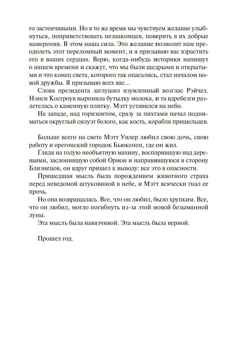 Когда на Землю прибывают представители сверхмогущественной инопланетной цивилизации и предлагают населению планеты преобразиться и стать единым целым, откинув материальную оболочку, – как на это ответить? Среди огромного населения планеты на десять тысяч ответивших "да" приходится лишь один, кто ответил "нет". Среди ответивших "нет" – врач Мэтт Уилер из небольшого города Бьюкенен на Тихоокеанском побережье США. Ведь все его прежние представления о добре и зле, жизни и смерти, Боге и человеке поставлены под сомнение. Он оказывается в положении, когда приходится выбирать, на чьей ты стороне в апокалиптическом противостоянии, способном изменить облик самой Вселенной...