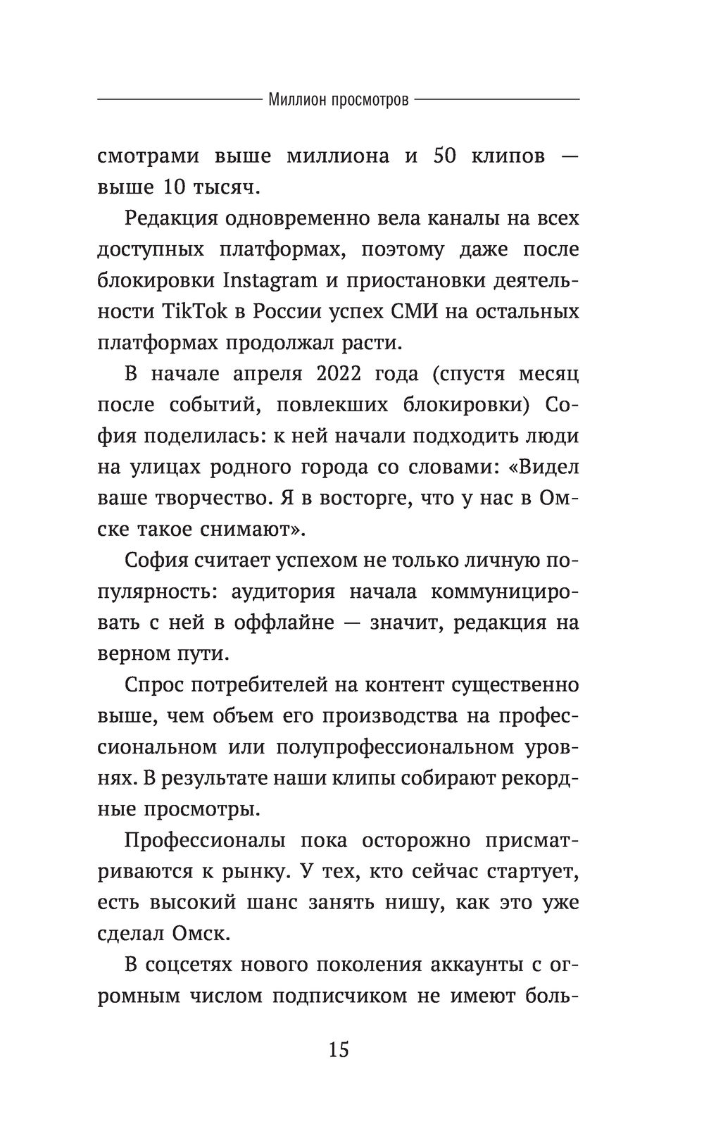 Книга Ирины Гольмгрейн "Миллион просмотров. Как увеличить охваты коротких видео" для тех, у кого нет права на ошибку, кому некогда или не по статусу экспериментировать, и хочется сразу попасть в рекомендации и начать завоевывать признание, а желательно еще и монетизировать его.
