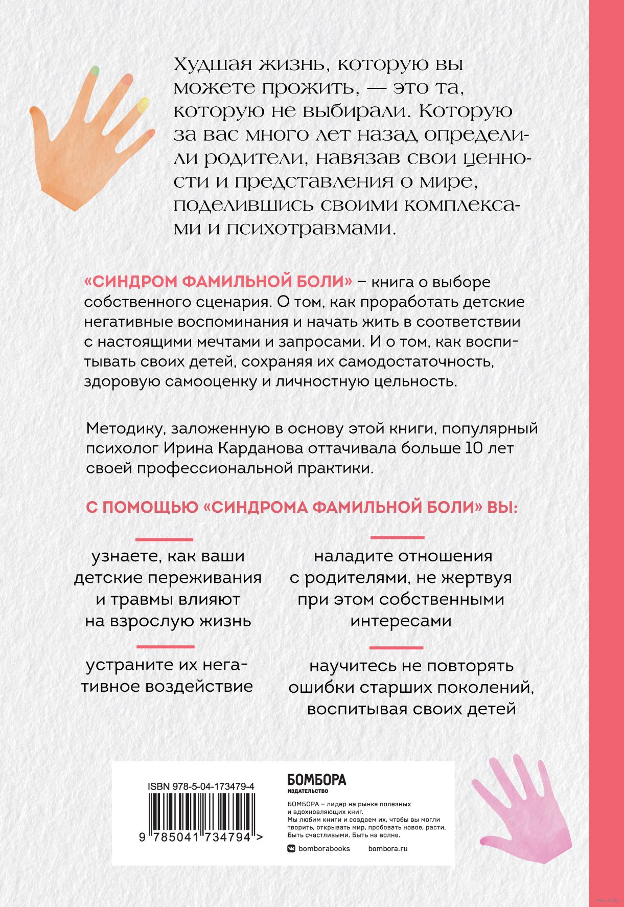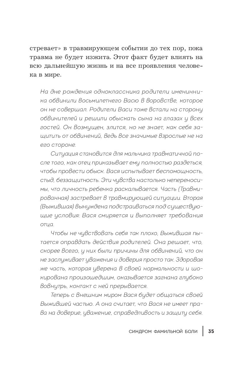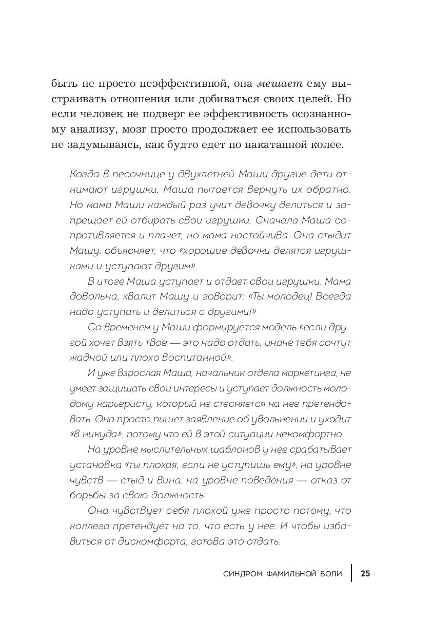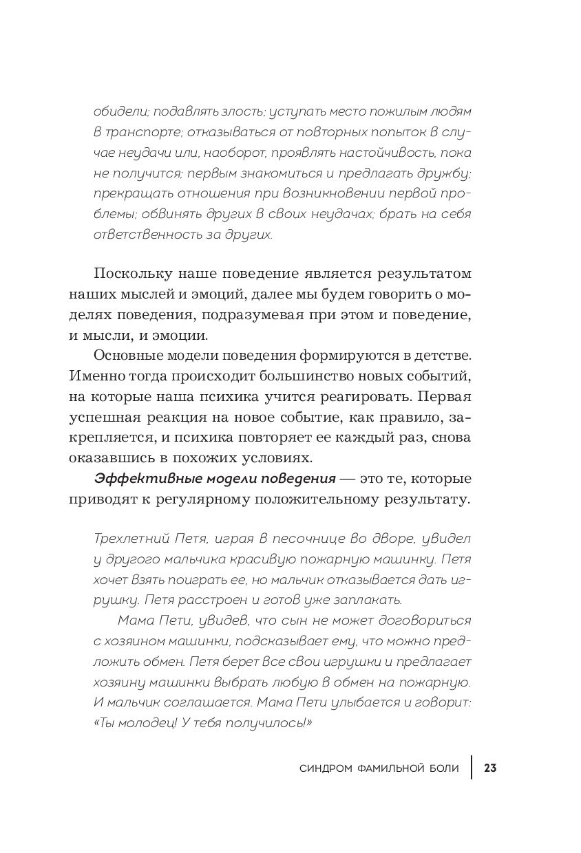 "Синдром фамильной боли" – книга о выборе собственного сценария. О том, как проработать детские негативные воспоминания и начать жить в соответствии с настоящими мечтами и запросами. И о том, как воспитывать своих детей, сохраняя их самодостаточность, здоровую самооценку и личностную цельность.
