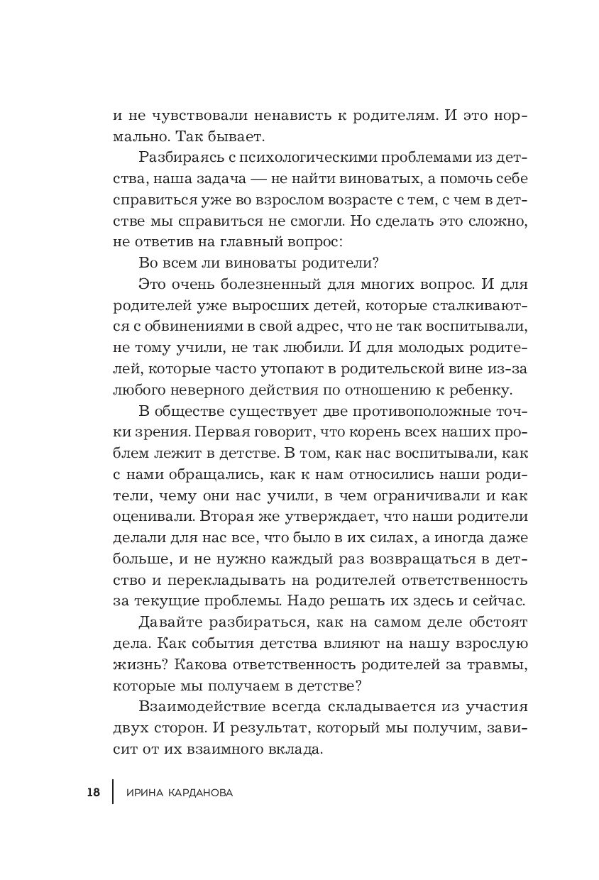 С помощью этой книги вы узнаете, как ваши детские переживания и травмы влияют на взрослую жизнь; устраните их негативное воздействие; наладите отношения с родителями, не жертвуя при этом собственными интересами; научитесь не повторять ошибки старших поколений, воспитывая своих детей.