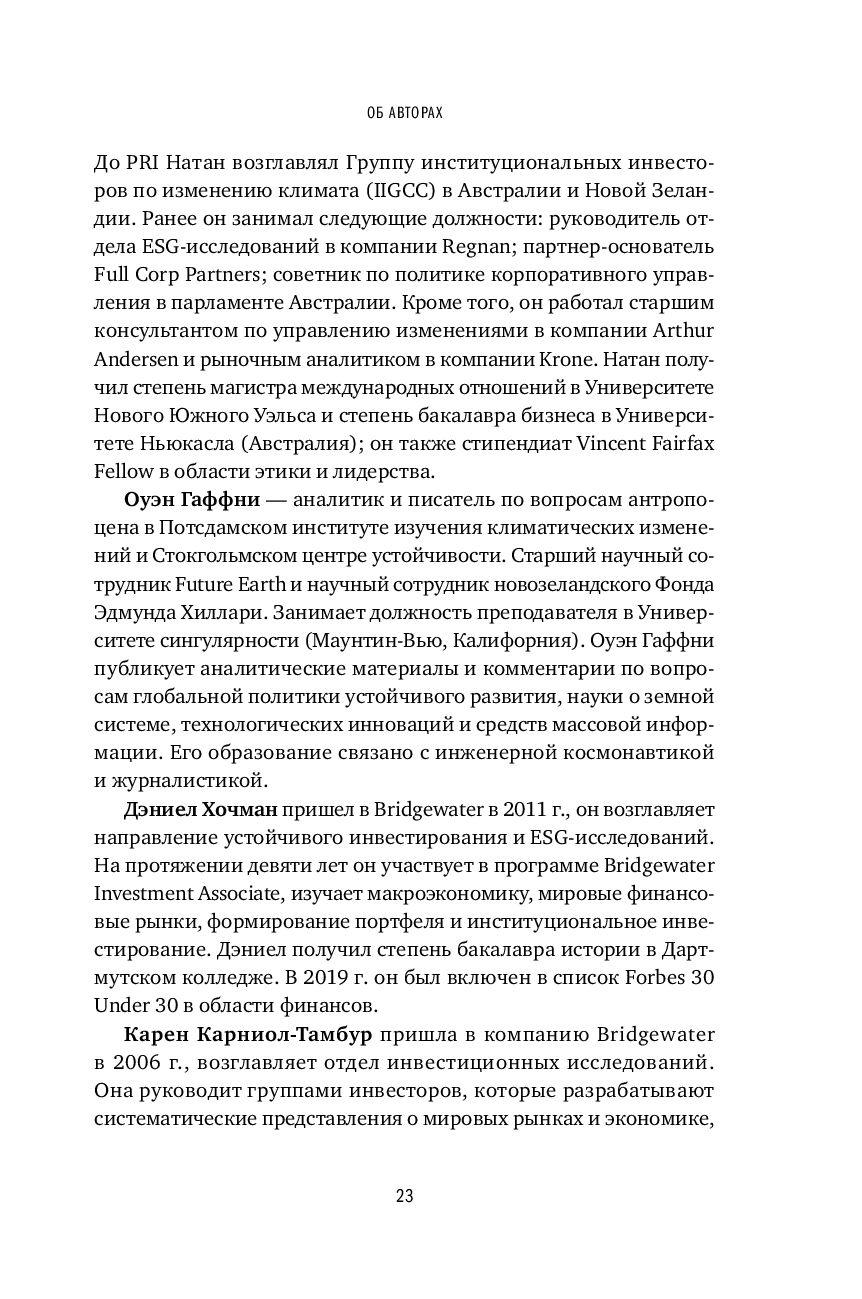 Книга выходит за рамки стандартных подходов экономической теории к устойчивому инвестированию. В ней подчеркивается, что капитализм, основанный на более реальном взаимодействии экономики и общества, может усилить интеграцию ESG.