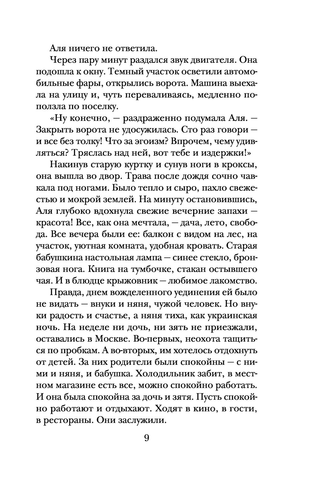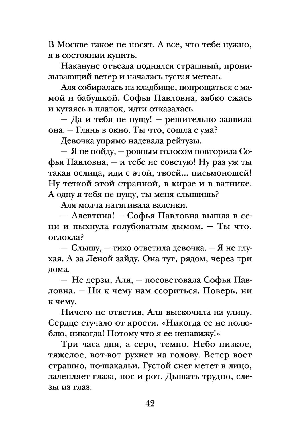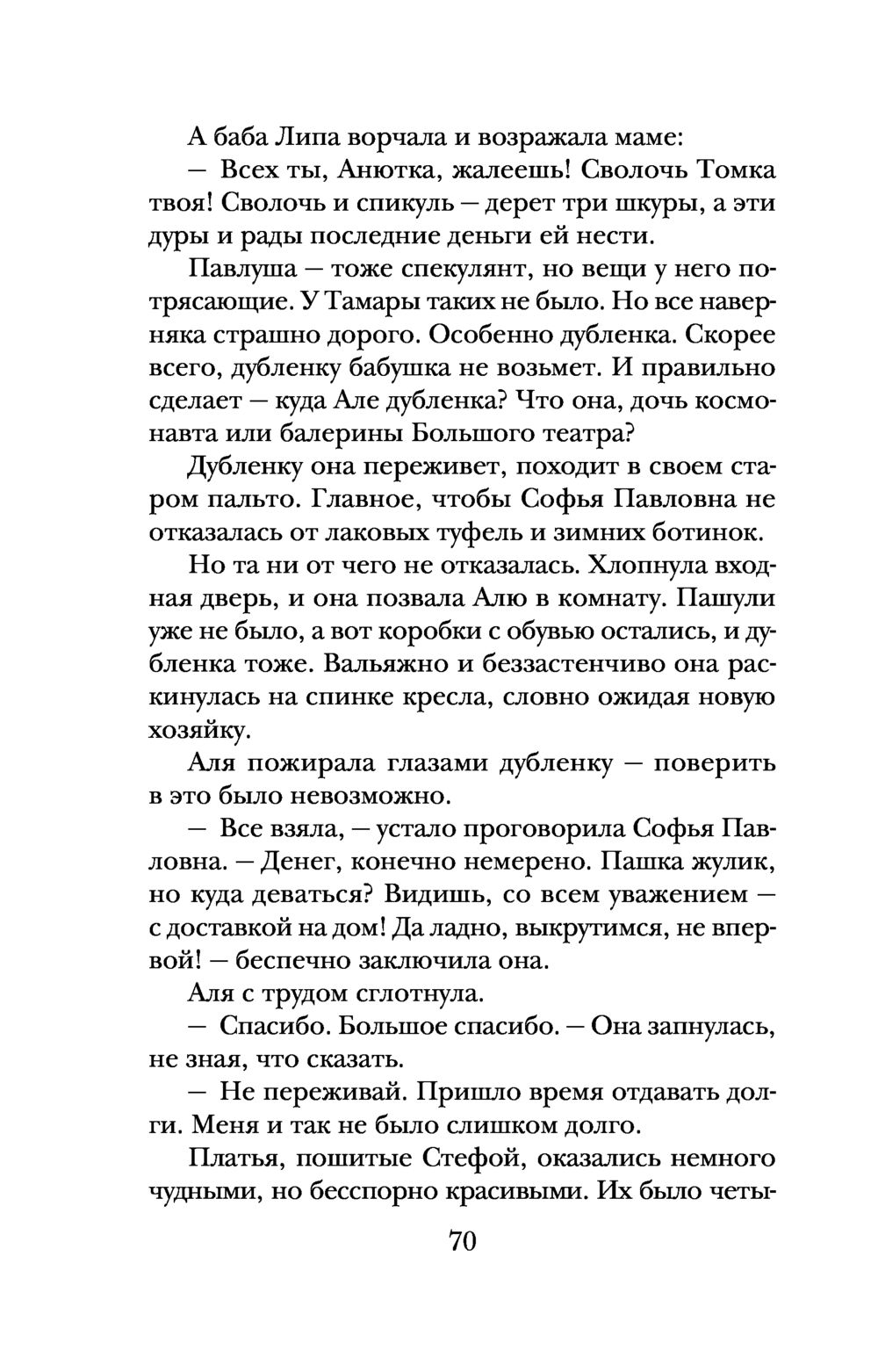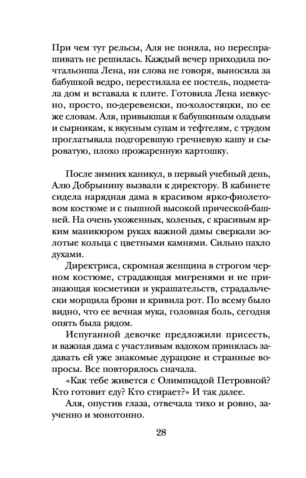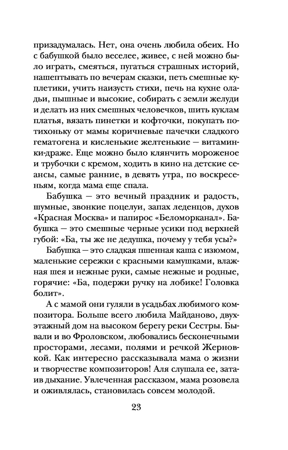 Но жизни без ошибок не бывает. И Аля, став совсем взрослой, понимает: главное – в ее жизни была любовь, настоящая, всепоглощающая. А значит, она почти счастливая женщина. Потому что быть совсем счастливой, наверное, невозможно.