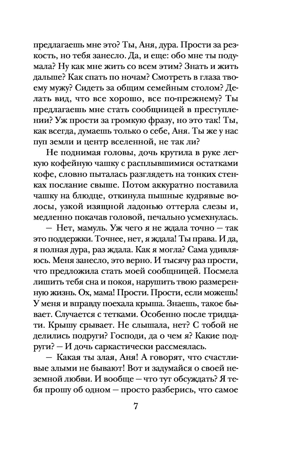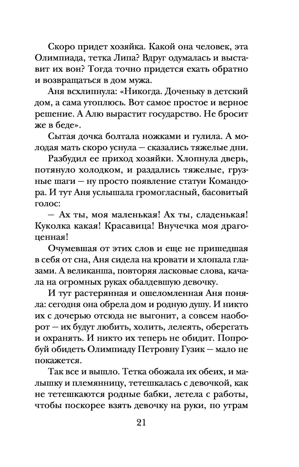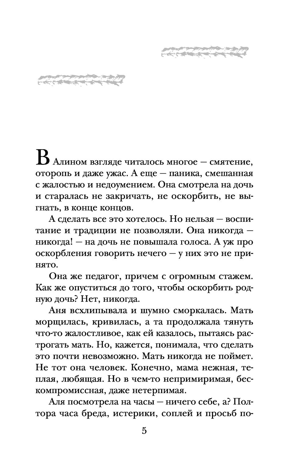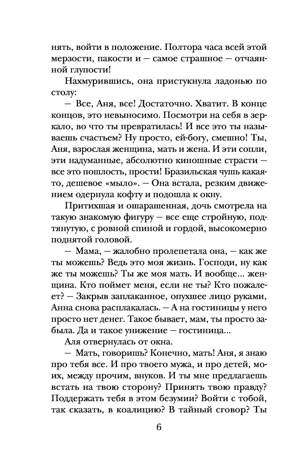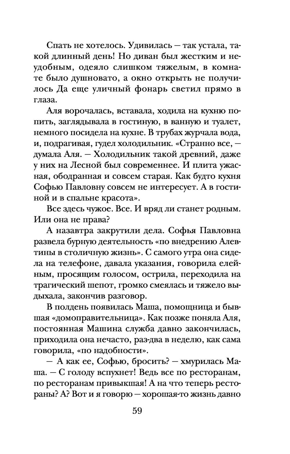 Но жизни без ошибок не бывает. И Аля, став совсем взрослой, понимает: главное – в ее жизни была любовь, настоящая, всепоглощающая. А значит, она почти счастливая женщина. Потому что быть совсем счастливой, наверное, невозможно.