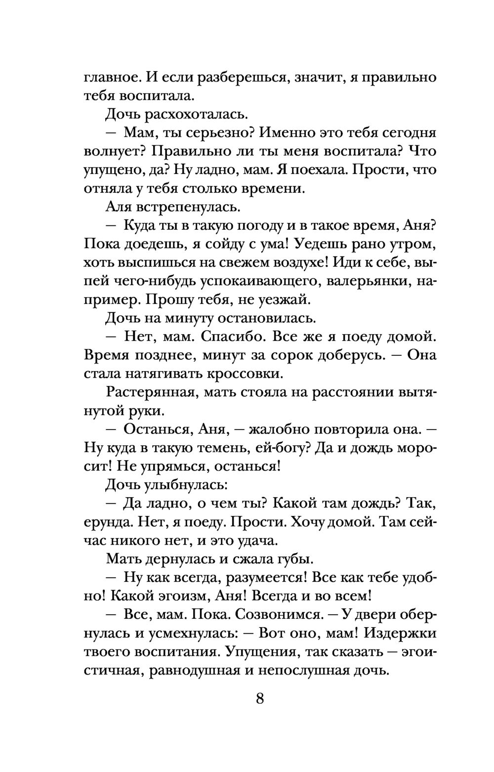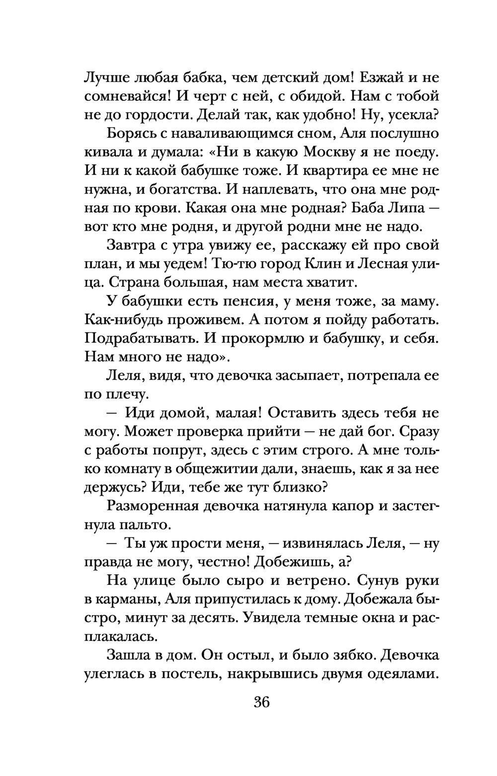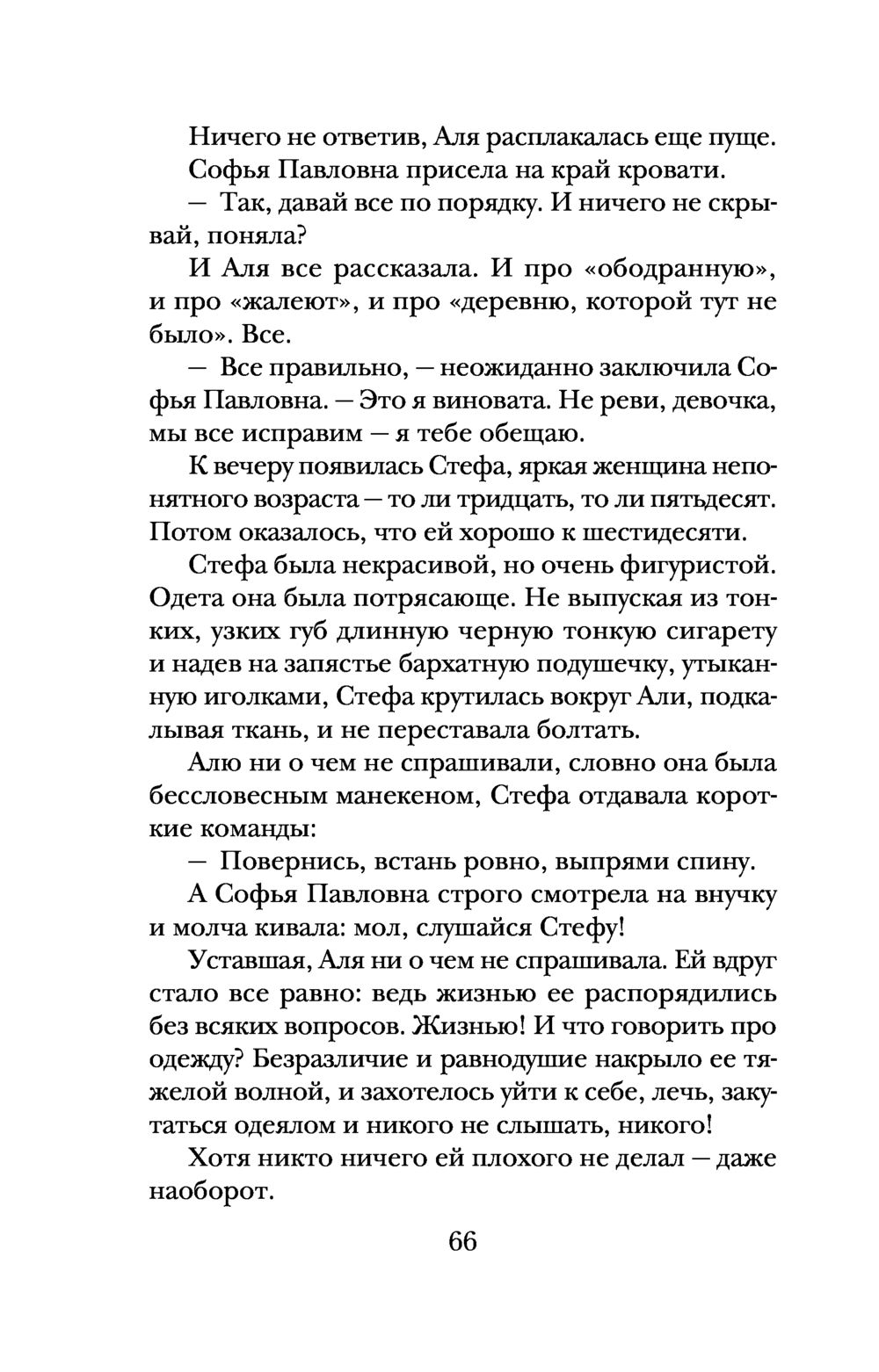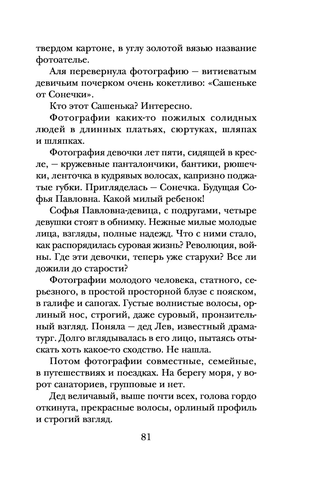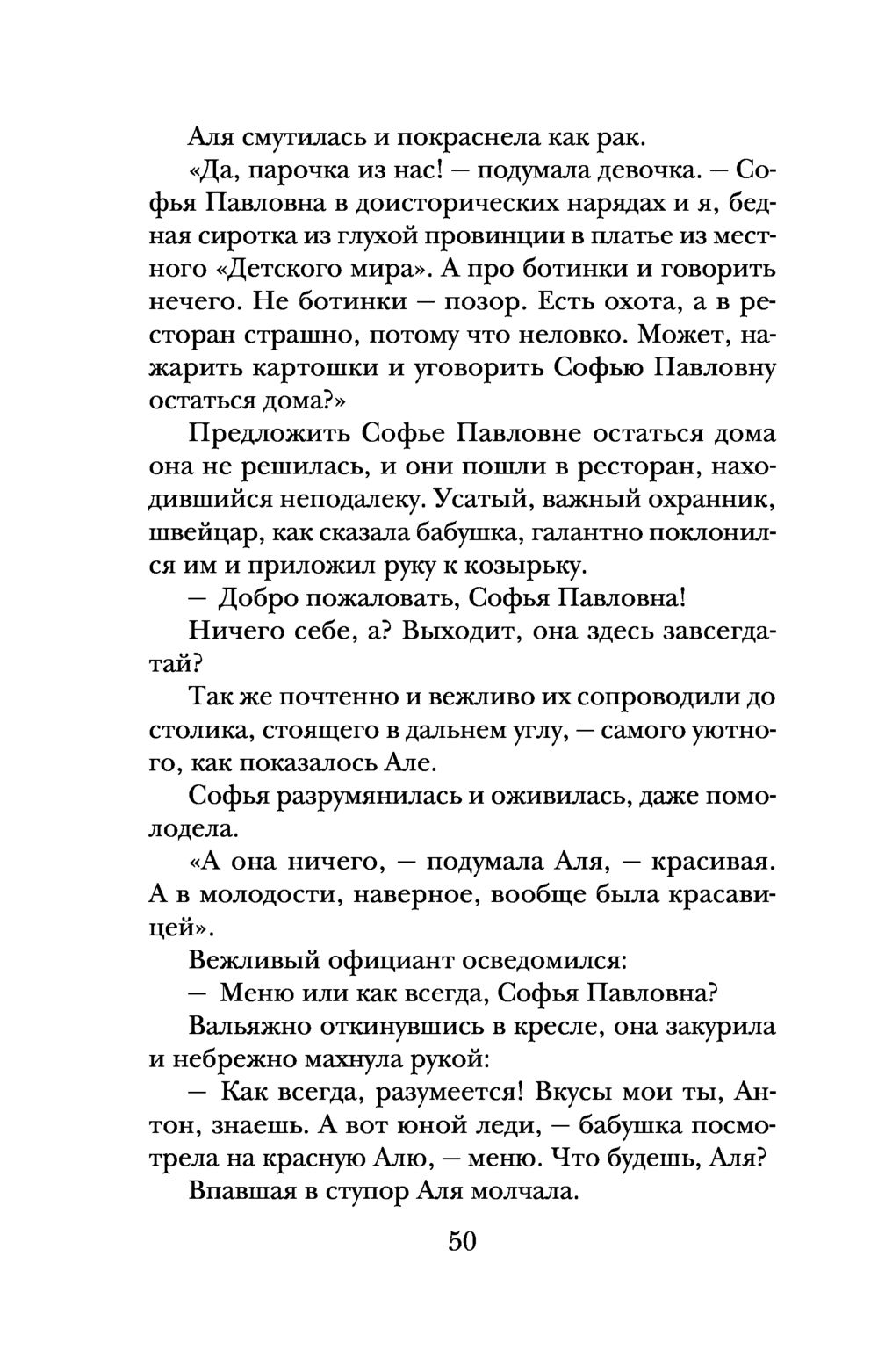 Но жизни без ошибок не бывает. И Аля, став совсем взрослой, понимает: главное – в ее жизни была любовь, настоящая, всепоглощающая. А значит, она почти счастливая женщина. Потому что быть совсем счастливой, наверное, невозможно.