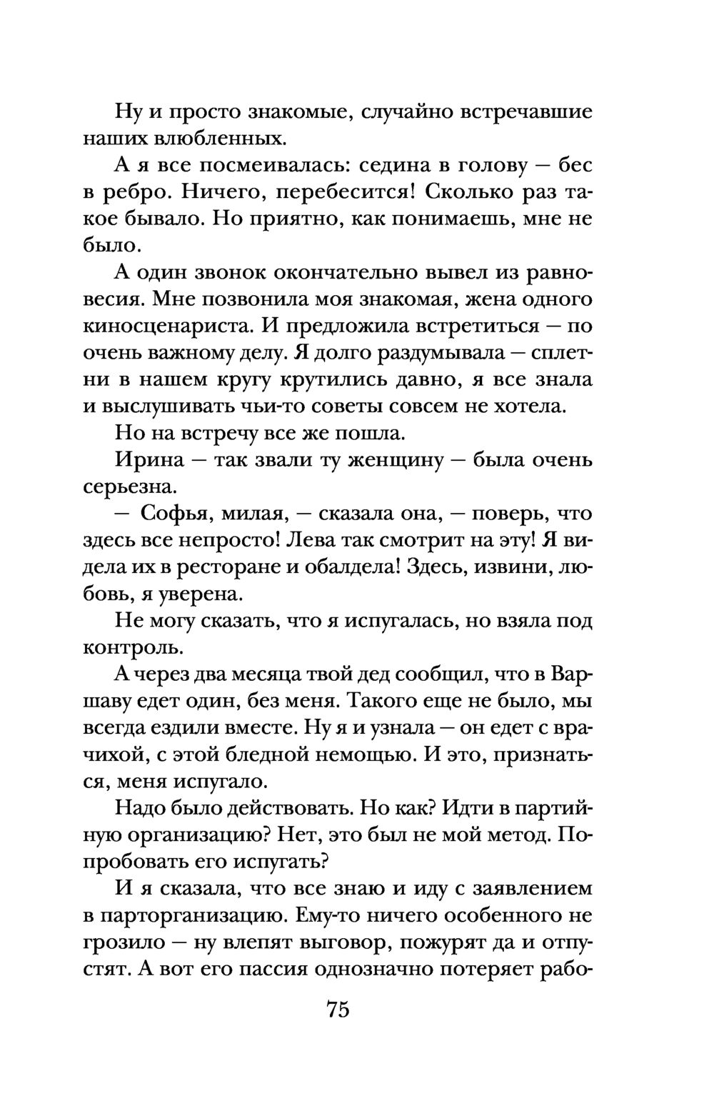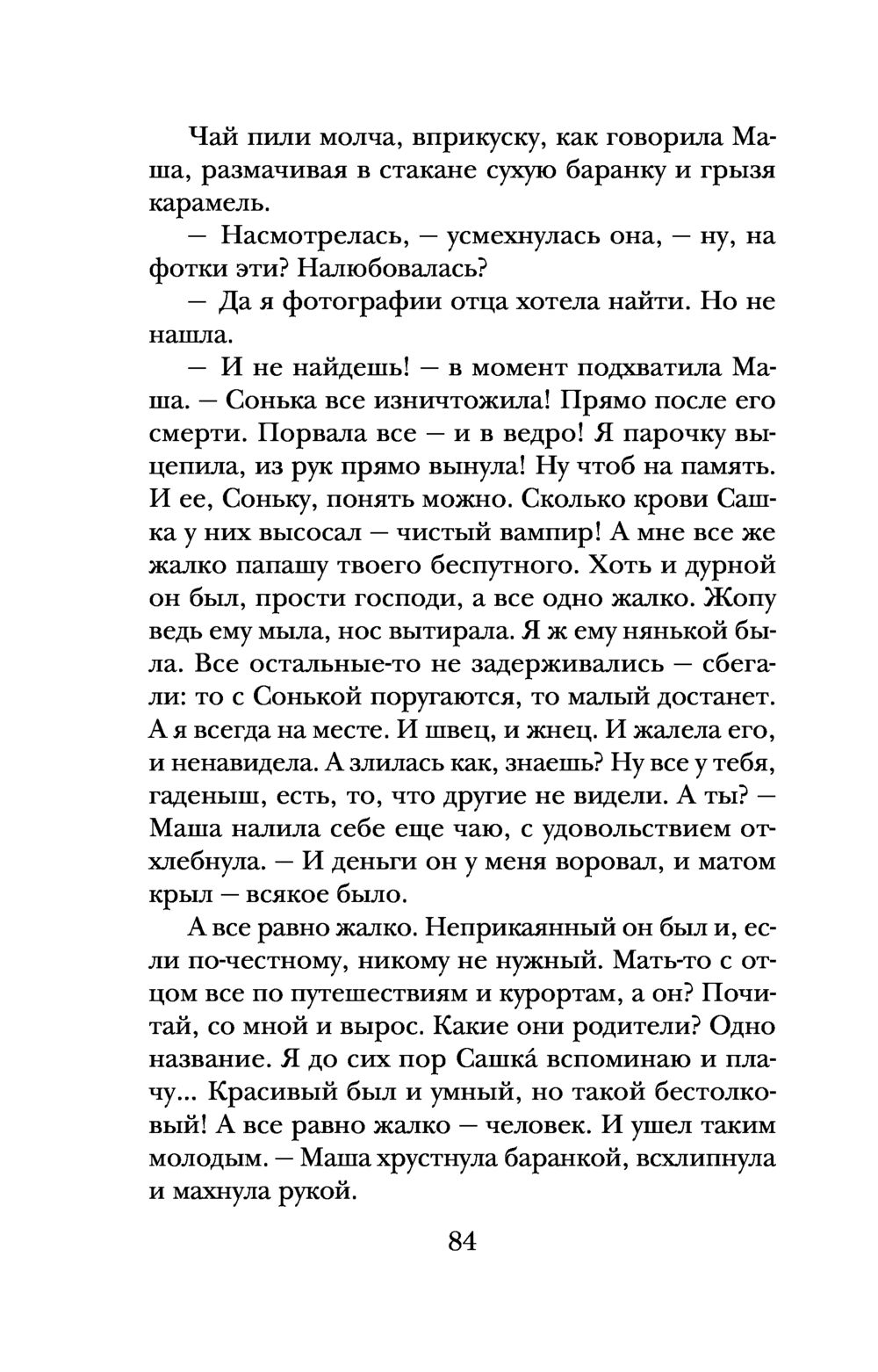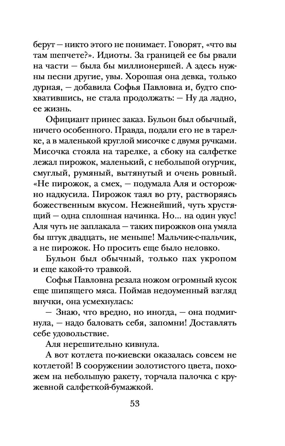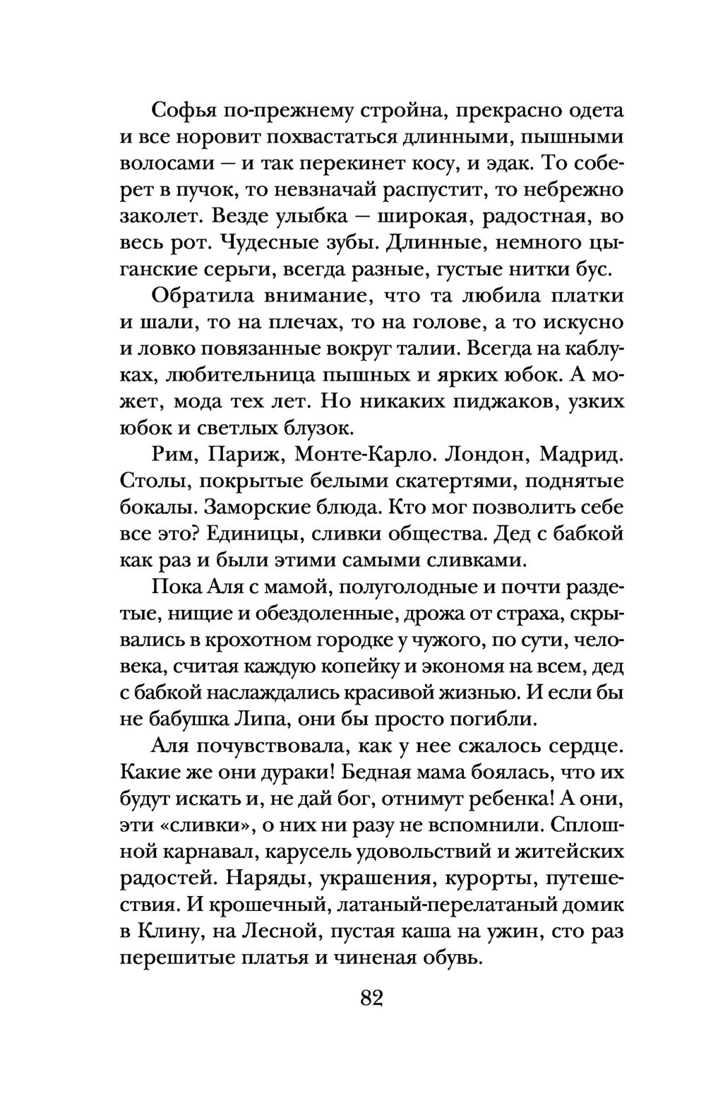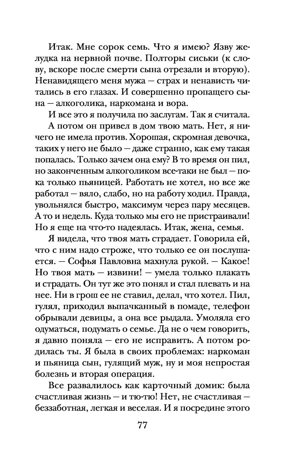 Но жизни без ошибок не бывает. И Аля, став совсем взрослой, понимает: главное – в ее жизни была любовь, настоящая, всепоглощающая. А значит, она почти счастливая женщина. Потому что быть совсем счастливой, наверное, невозможно.