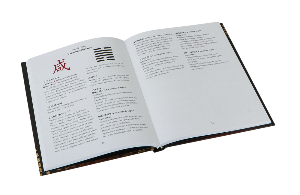 Основу "И Цзин" составляют 64 фигуры, называемые гексаграммами, – это все возможные сочетания шести прерывистых и сплошных линий. Все феномены возникают в результате взаимодействия позитивных, творческих, мужественных сил ян и негативных, пассивных, женственных сил инь...