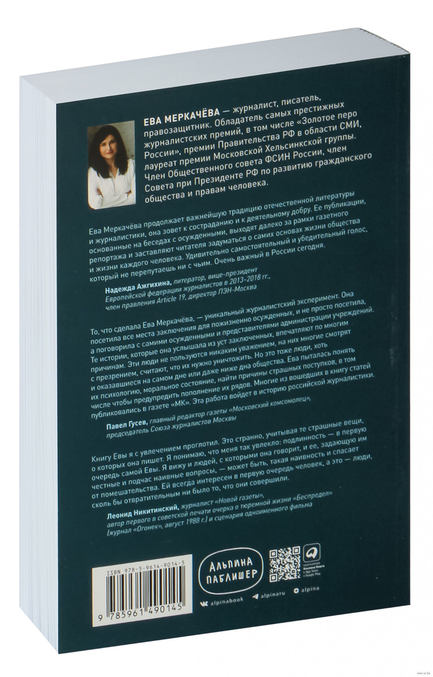 Журналист и правозащитник Ева Меркачёва побывала во всех семи российских колониях для пожизненно осужденных – там, где никто не хочет оказаться по своей воле. Она брала интервью у сотрудников колоний и у заключенных и рассказала в своей книге честно и без прикрас всё, что ей удалось увидеть и узнать. Автор подробно описала распорядок дня в колониях, быт заключенных, их самих и то, как меняют людей тюрьма, осознание тяжести совершенных преступлений и того, что им не выйти на свободу до конца жизни.