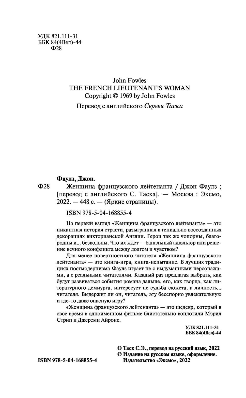 "Женщина французского лейтенанта" – один из главных романов Фаулза. Завлекая читателя пикантной любовной фабулой, сочетая реалистическую традицию с элементами детектива и мистики, Фаулз играет не с выдуманными персонажами, а с реальными читателями.