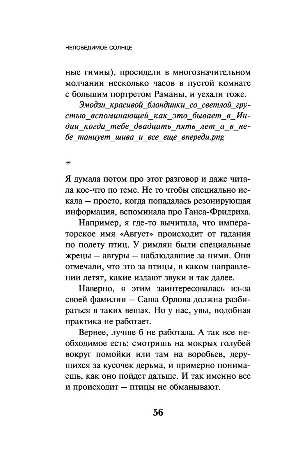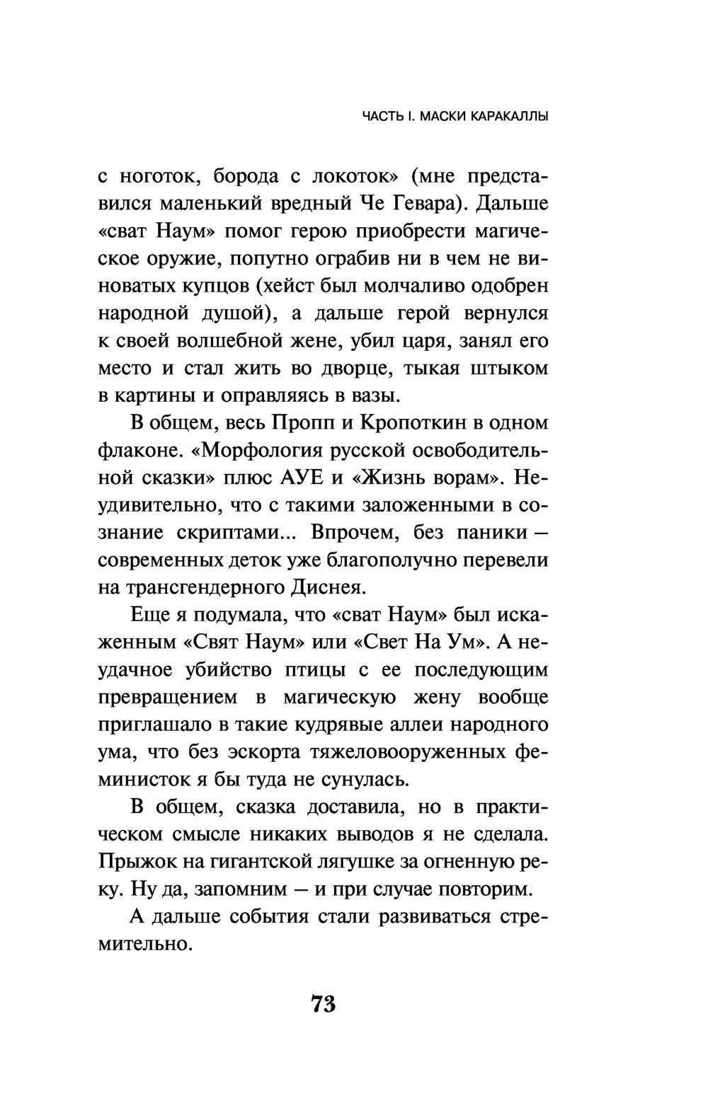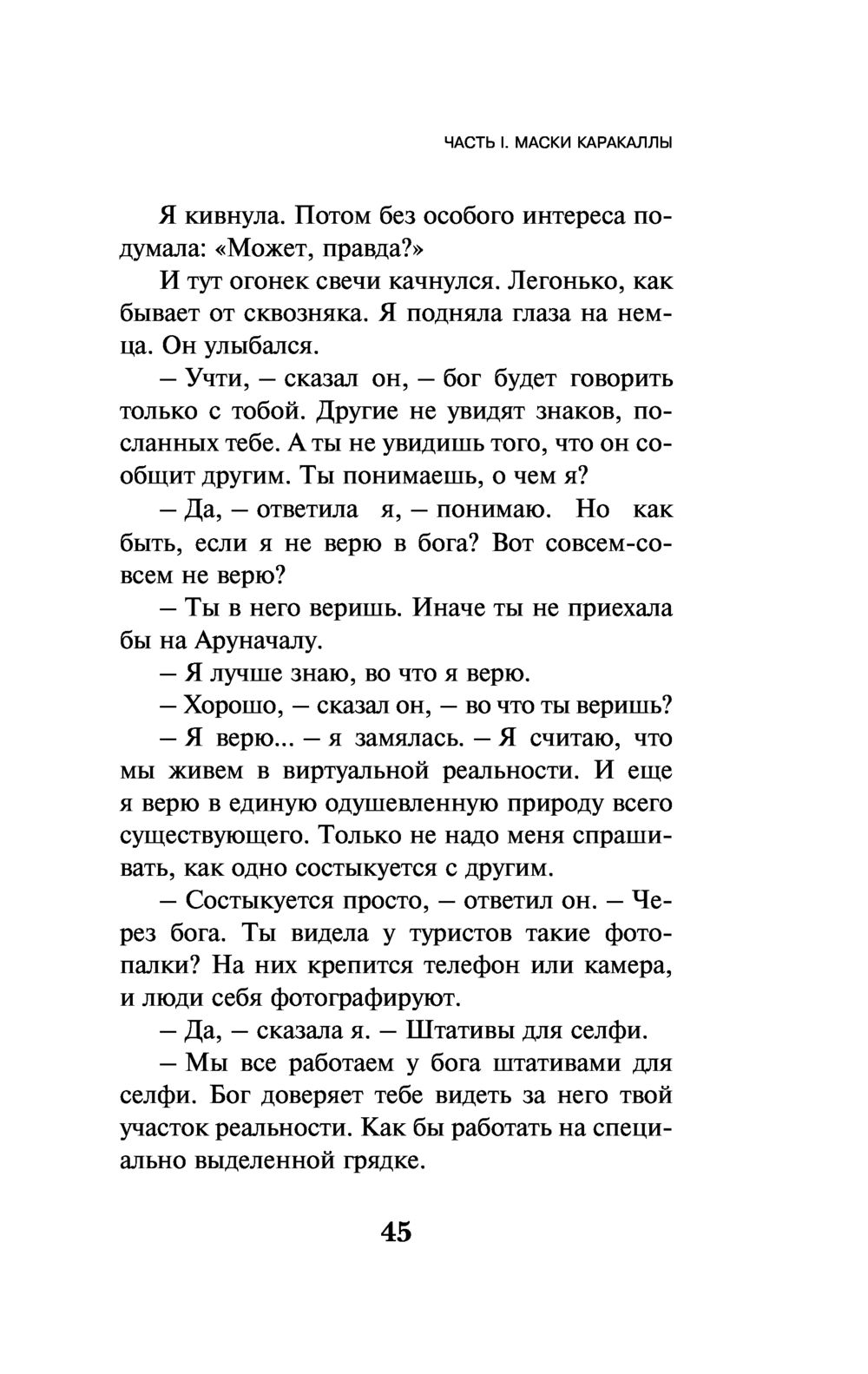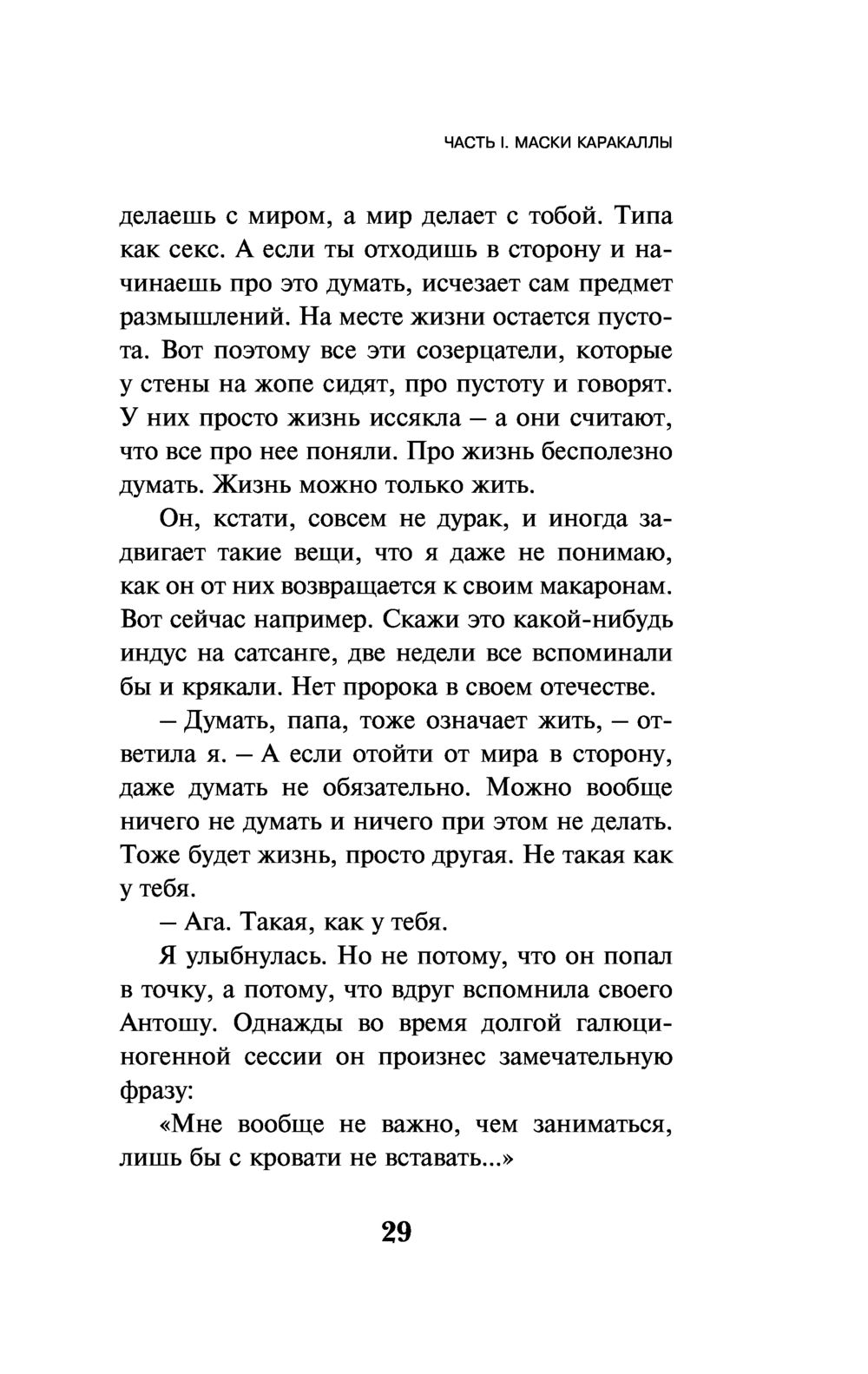 Саша встретит историков-некроэмпатов, римских принцепсов, американских корпоративных анархистов, турецких филологов-суфиев, российских шестнадцатых референтов, кубинских тихарей и секс-работниц – и других интересных людей (и не только). Но самое главное, она прикоснется к тайне тайн – и увидит, откуда и как возникает то, что Илон Маск называет компьютерной симуляцией, а Святая Церковь – Мiром Божьим.