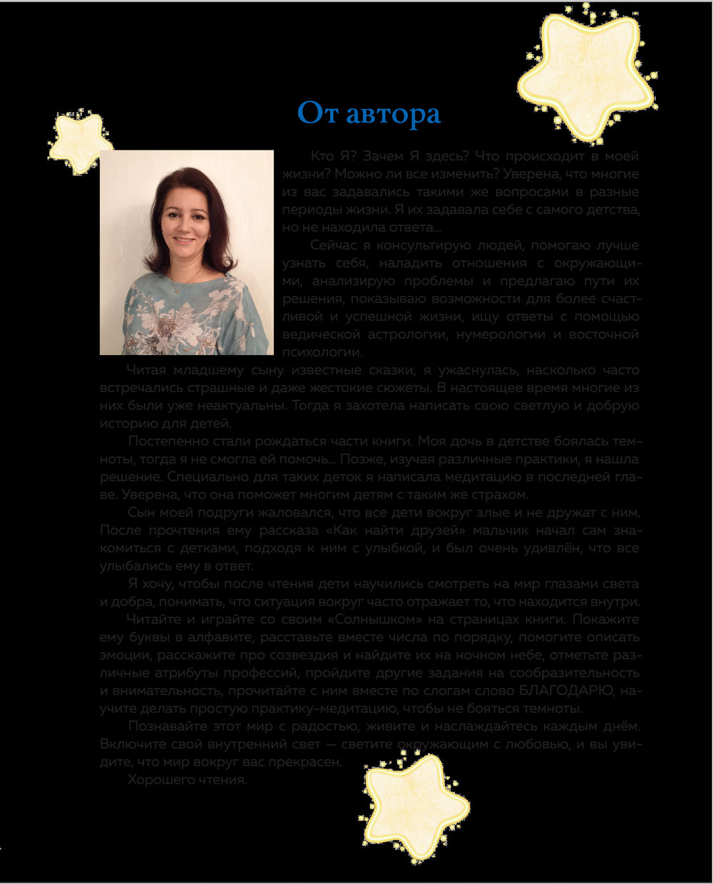 Это история про маленькое Солнышко. Оно появилось в мире, чтобы светить и дарить радость людям вокруг. Но как и любой ребёнок, оно иногда капризничает, разбрасывает игрушки и задает много вопросов.