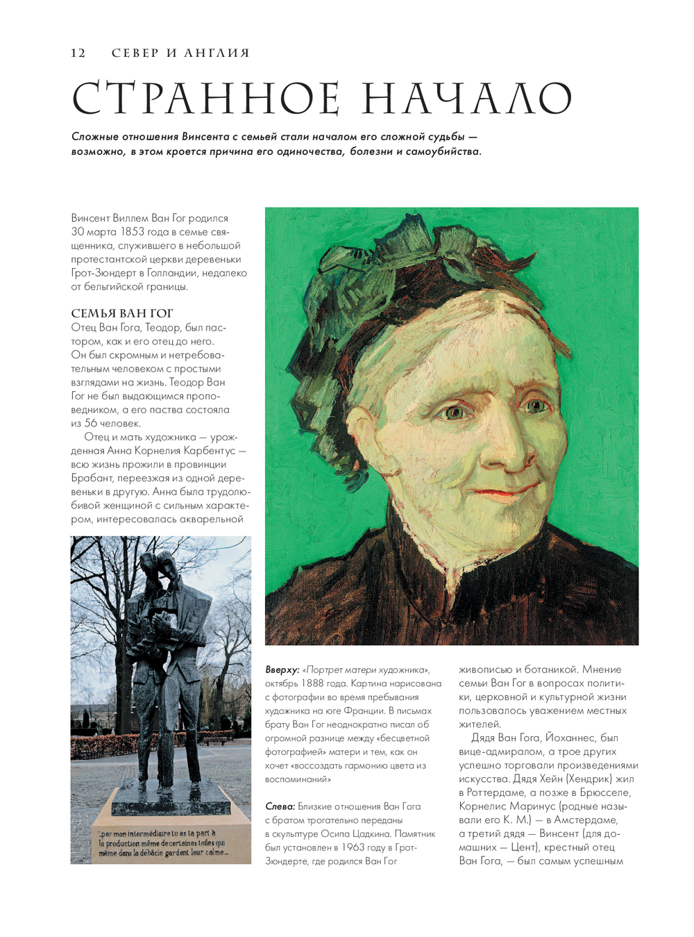 Подробная биография Ван Гога сопровождена фотографиями из личного архива художника, фамильными документами, а также множеством репродукций его работ в том числе картин и набросков. Блок книги напечатан на высококачественной плотной мелованной бумаге. В качестве подарка эта книга порадует как человека, интересующегося искусством, так и ценителя красивых альбомов.