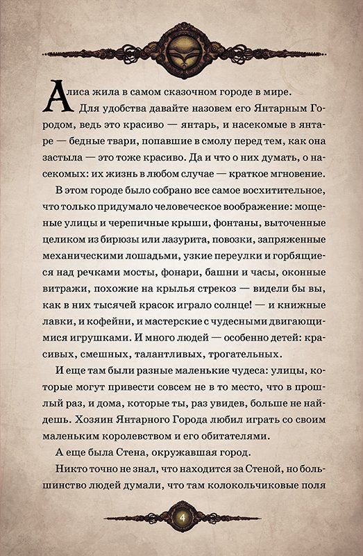 Алиса растет в ласковом и счастливом Янтарном Городе, на улицах которого всегда звучит детский смех. Она ведет сонную и размеренную жизнь принцессы, носит ленты в волосах и корсеты, старается быть вежливой и послушной.