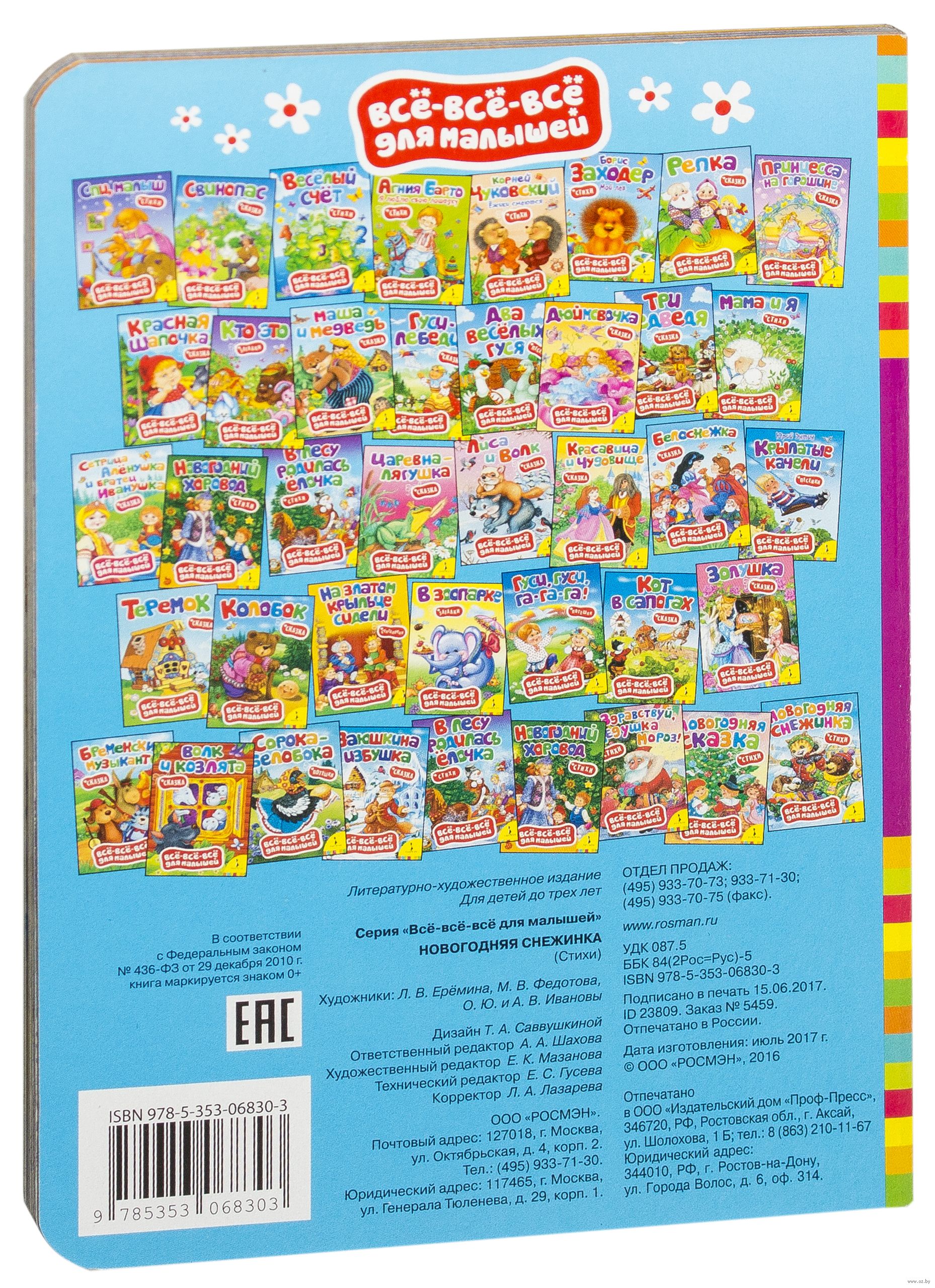 Самые известные новогодние загадки, песенки и стихи в серии "Все-все-все для малышей"! Книги удобного формата, с фольгой на обложке, с плотными страницами и красивыми иллюстрациями по привлекательной цене.