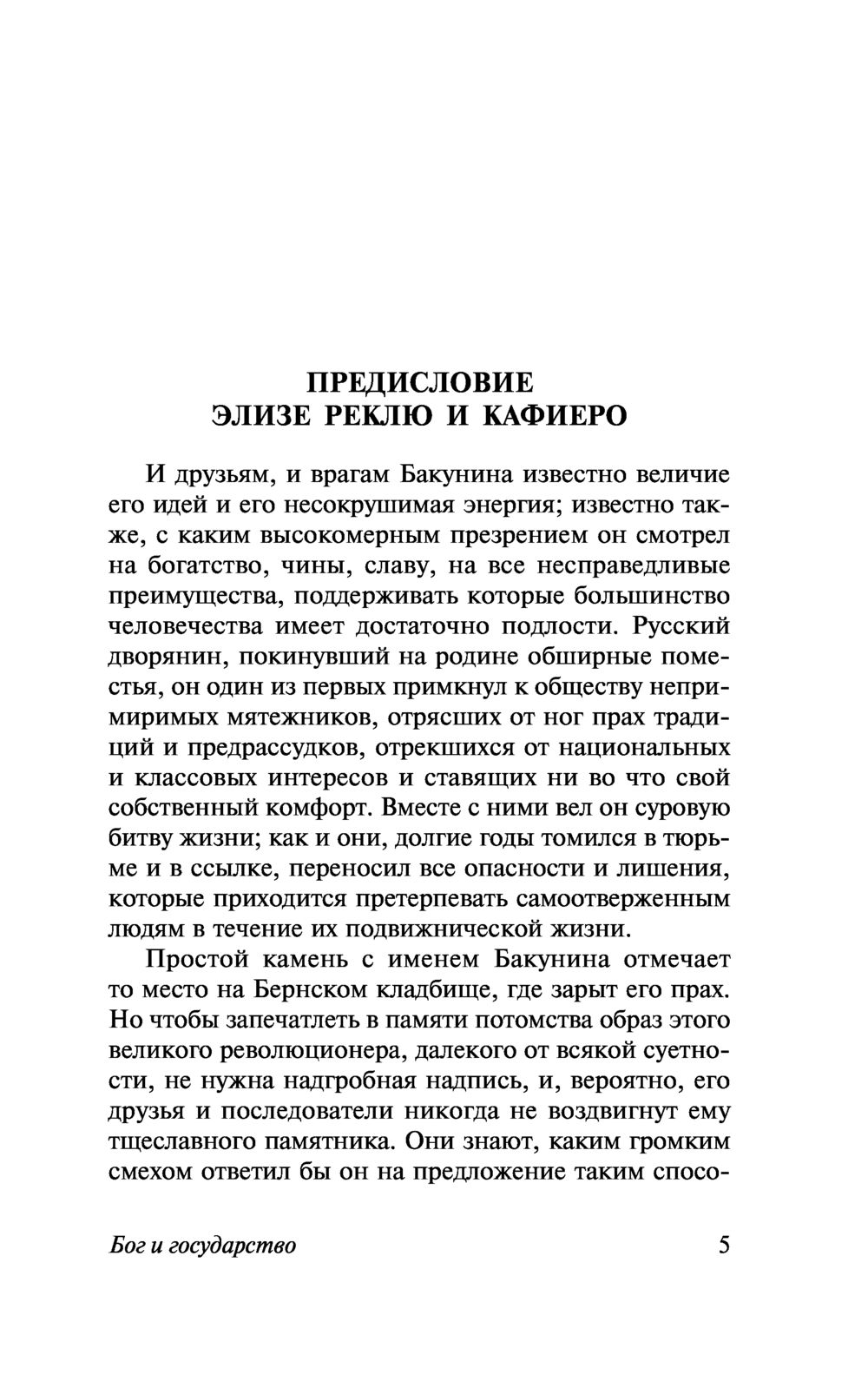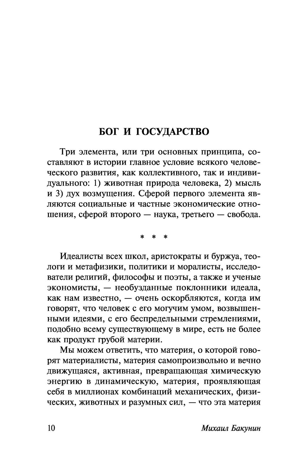 В сборник также включена незаконченная рукопись Бакунина "Бог и государство", в которой он критикует христианство и расцветающее в то время технократическое движение с материалистической, анархистской и индивидуалистической точек зрения.